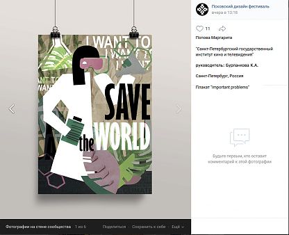 Одним из обладателей диплома за 3 место стала студентка 3 курса, направления 54.03.01 "Дизайн" Маргарита Попова, выполнившая под руководством доцентов кафедры компьютерной графики и дизайна М.Н.Макаровой и К. А. Бурланковой, плакат "Important problems".