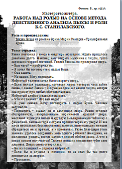 Представленные на конкурс письменные работы представляли собой действенный анализ ролей в выбранном студентами отрывке. Участники конкурса должны были подробно прописать биографию выбранного персонажа, его внутренние монологи и т.д.