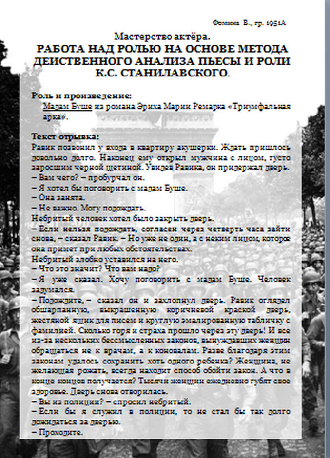 Роль Равика из произведения Эриха Марии Ремарка «Триумфальная арка»