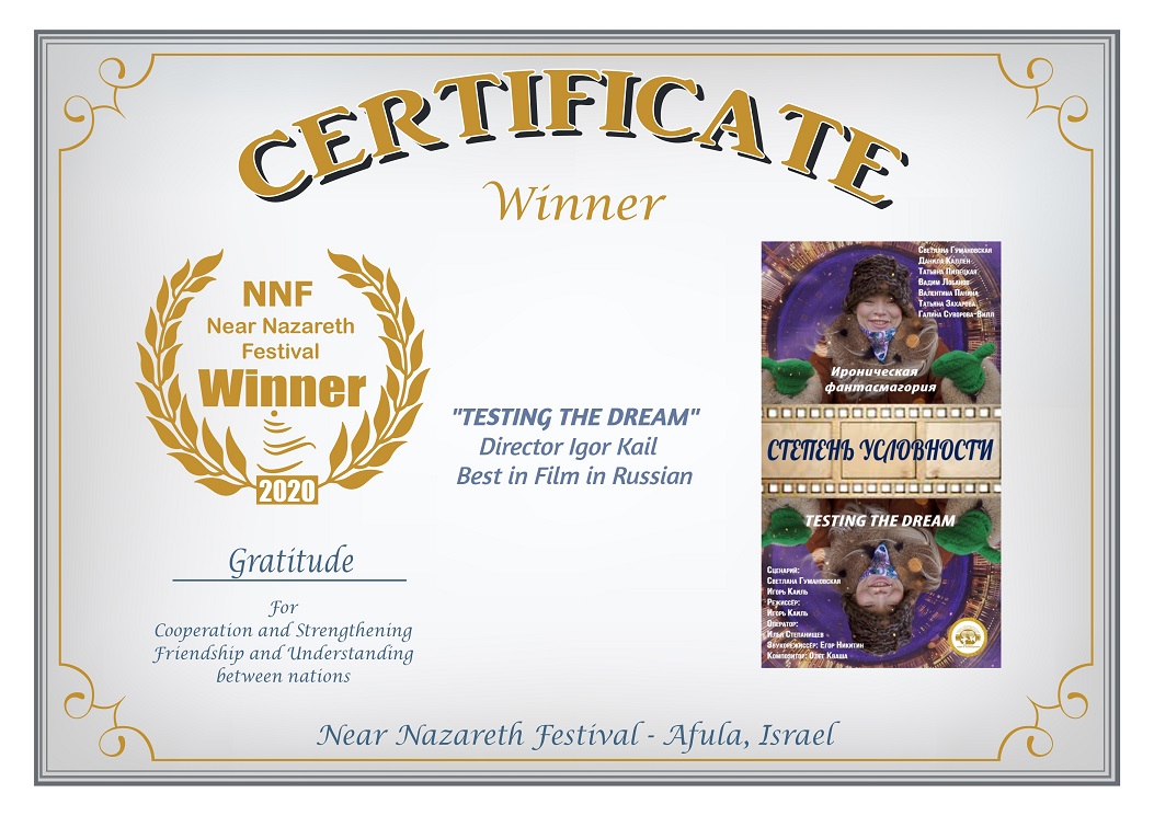 Картина режиссера Игоря Каиля "Степень условности" (мастерская Виктора Васильева, высшие режиссерские курсы) победила на кинофестивале Nazareth Festival в Израиле