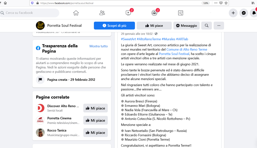 Конкурс монументального искусства "Sweet Art",проводимый в 2020-2021 году г.Альто Рено Терме (Италия), посвященный музыкальному жанру "соул" является частью международного музыкального фестиваля "Поретта". Появившись еще в 50-70 гг. ХХ века этот музыкальный жанр остается популярным до нашего времени и, благодаря своей эмоциональности, является источником вдохновения для художников,поэтов и писателей.