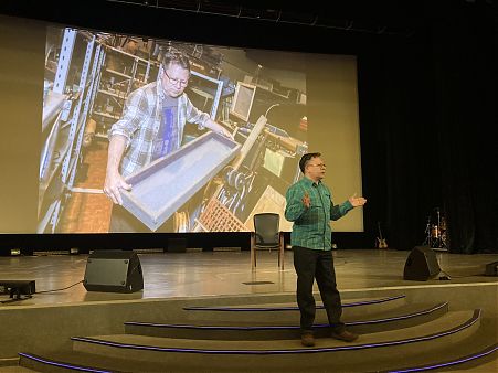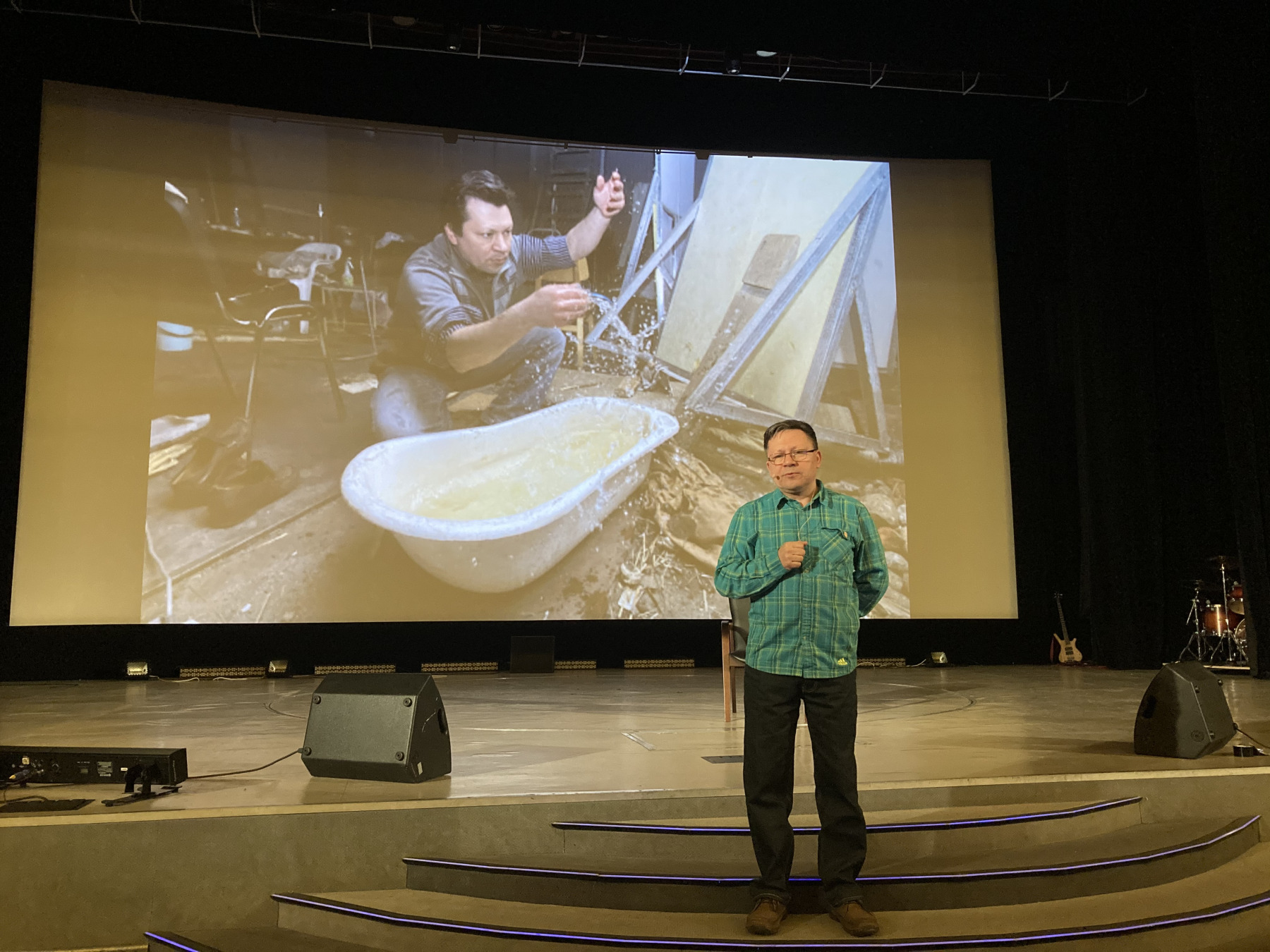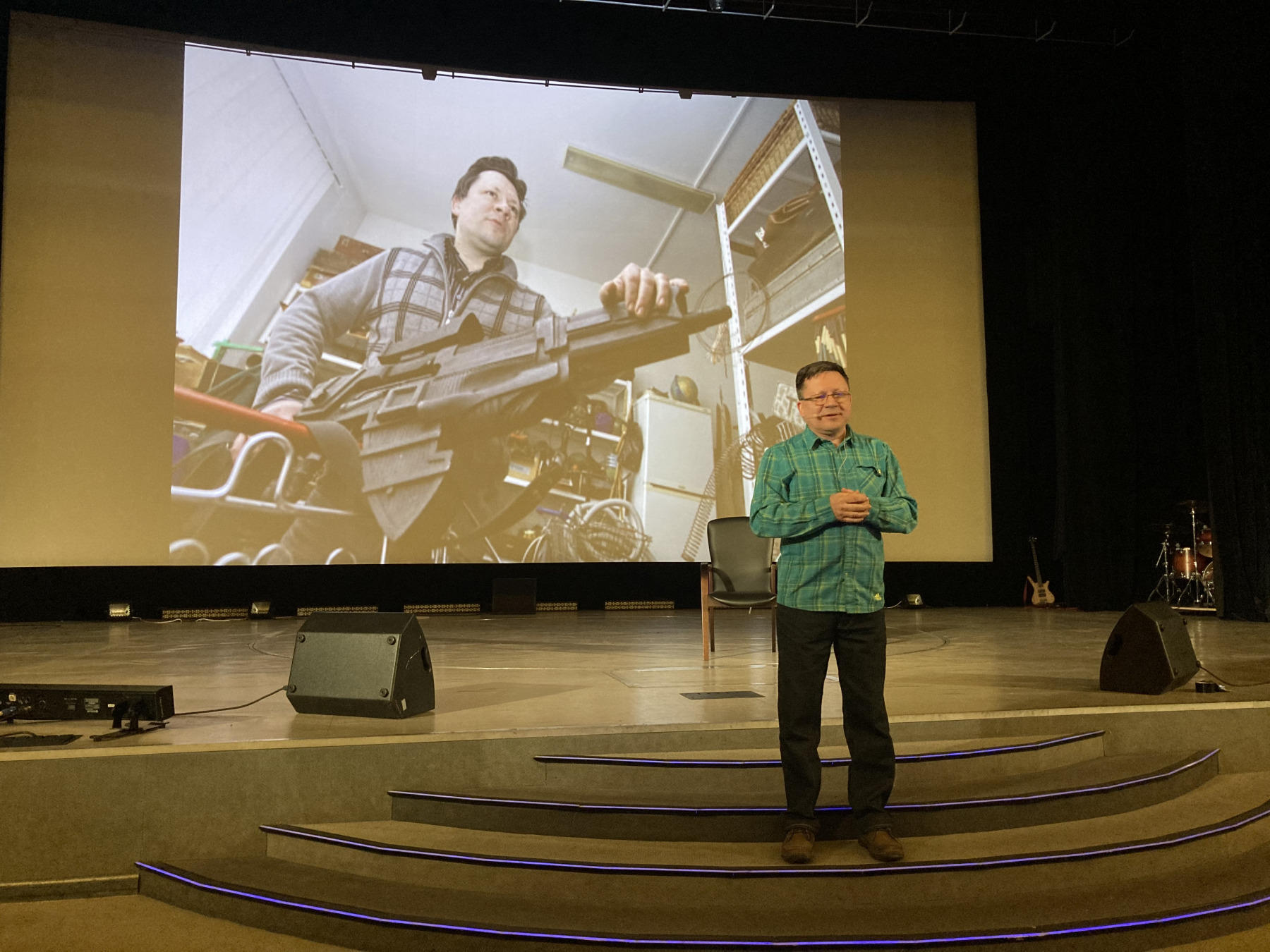 07 апреля в Киноконцертном зале института в рамках творческого проекта "Звукорежиссерская среда" кафедрой звукорежиссуры был организован и проведён интереснейший мастер-класс уникального артиста синхронных шумов Сергея Фигнера, который давно уже является легендой не только киностудии "Ленфильм", но и всего нашего города Санкт-Петербурга и Отечества. Так получилось, что Сергей Фигнер профессию не выбирал. Профессия нашла его сама. Отца Сергея, артиста эстрады Эдгара Фигнера, часто приглашали на озвучивание картин. Параллельно в том же тон-ателье работали шумовики. В те времена возможности по звукозаписи были ограничены. Сцены озвучивали целиком. Часто в одном углу артисты произносили свои слова, в другом шумовики, сразу три - пять человек, скрипели дверьми, топали, изображали ветер или дождь. А на экране получалась полная гармония. Работа шумовиков так увлекла отца Сергея, что он решил попробовать себя в этой профессии. А потом и сына привлек. В фильме «Удивительный заклад» семилетнему Сергею поручили поставить стул.