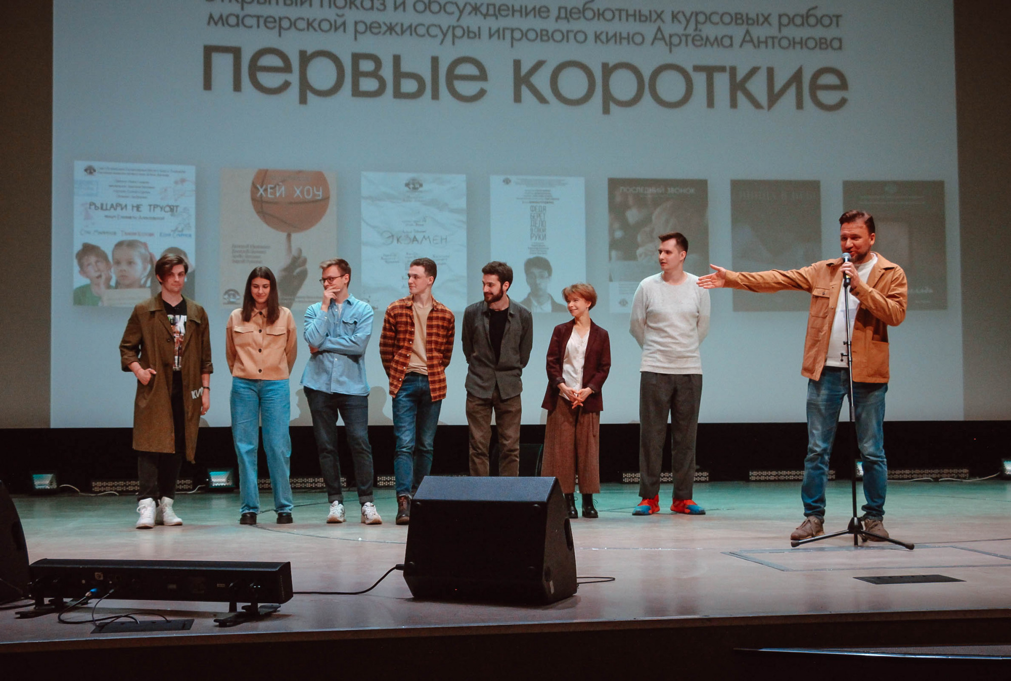 Первого апреля 2021 года в киноконцертном зале СПбГИКиТ прошёл открытый показ мастерской режиссуры игрового кино Артёма Антонова “Первые короткие”.