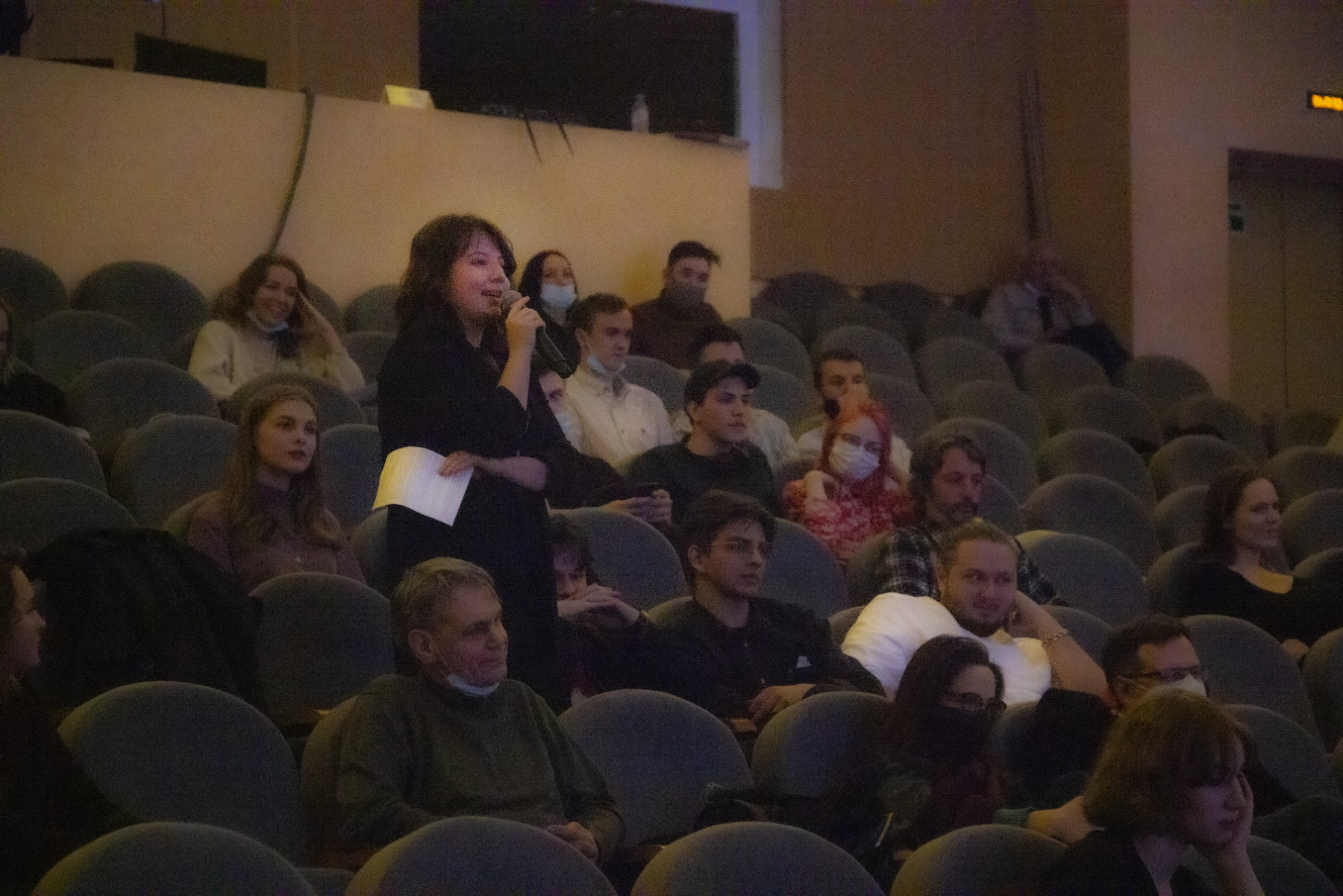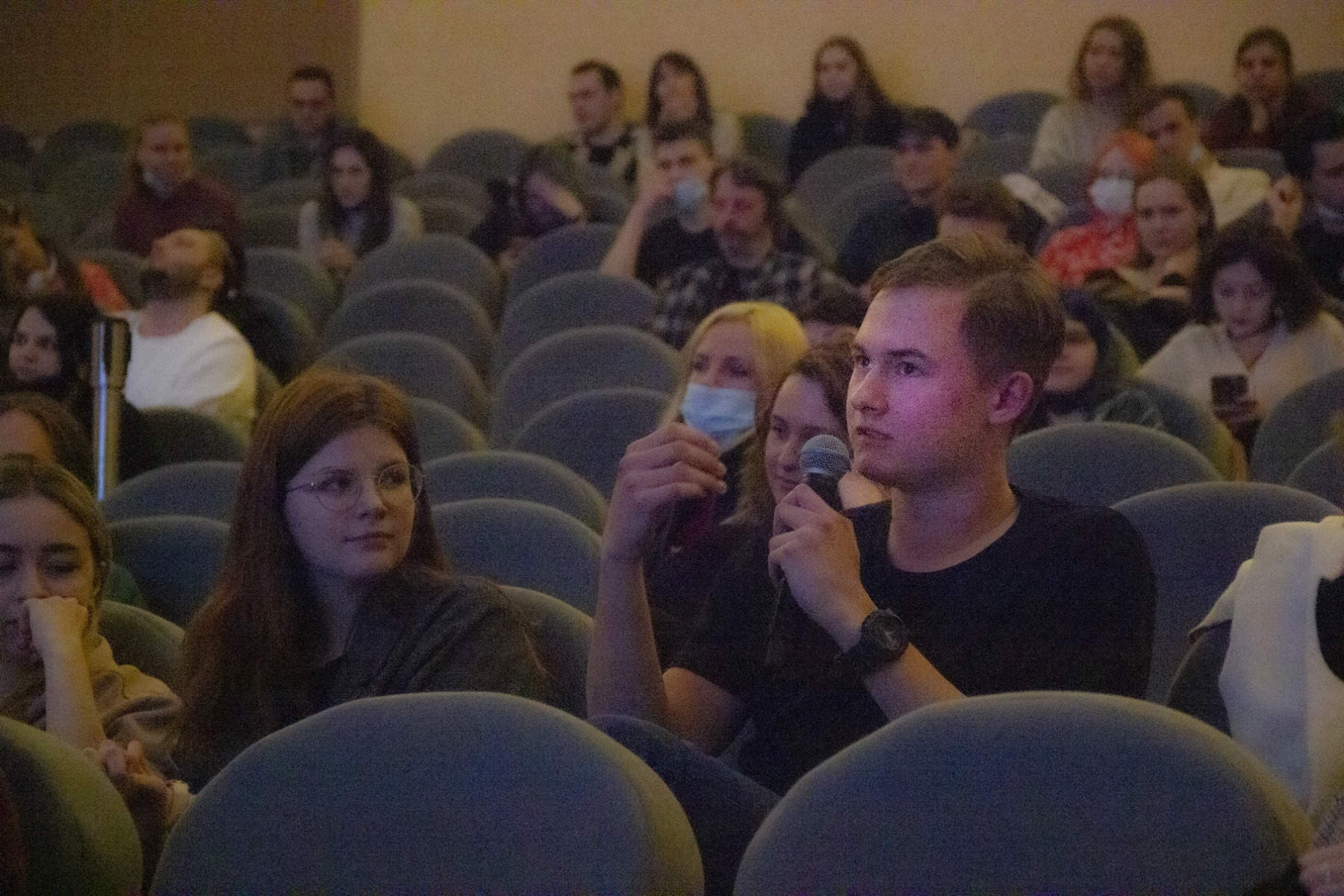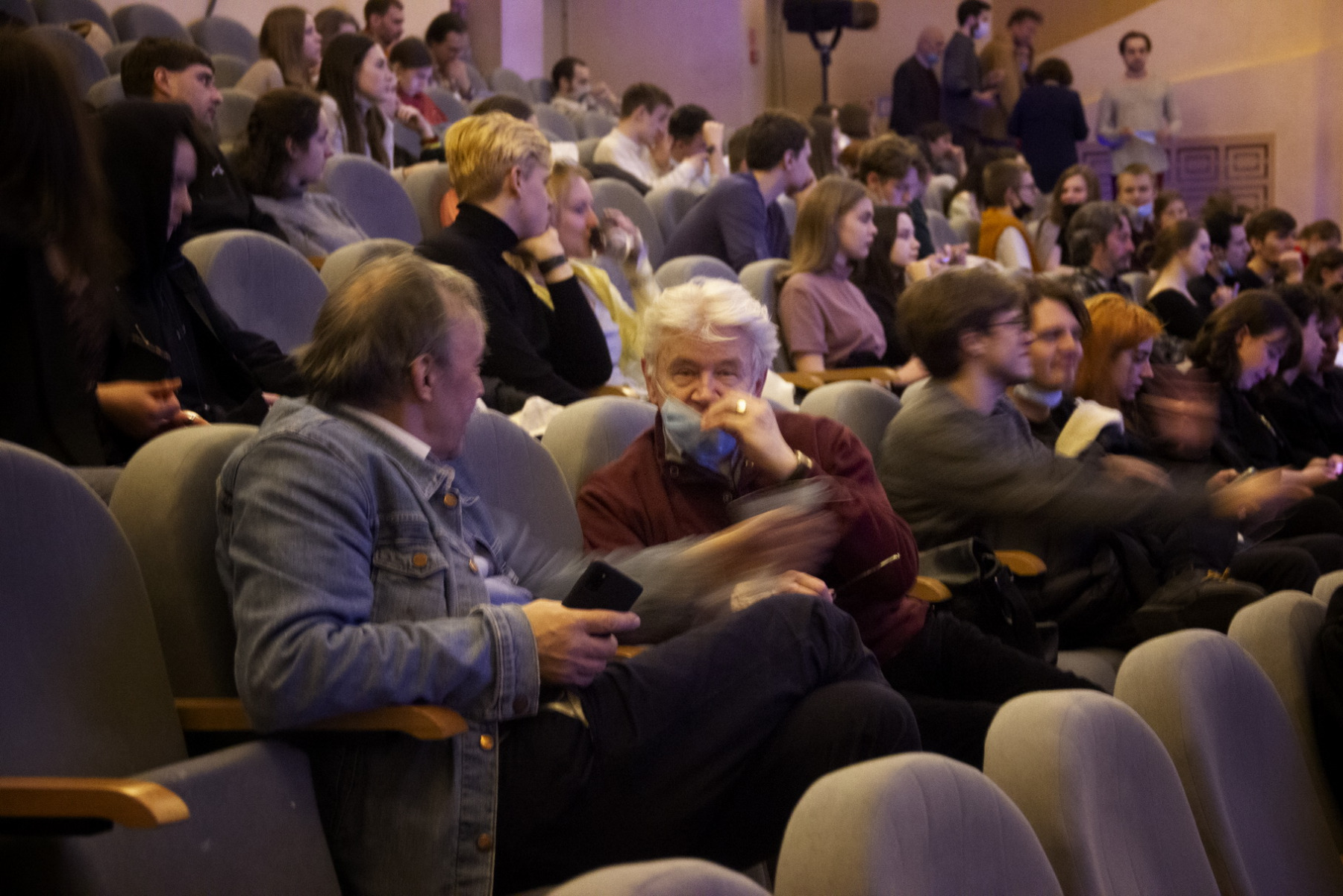 Это первое масштабное мероприятие кафедры режиссуры игрового кино после выхода вуза на очную форму обучения, и по атмосфере в зале ощущалось, что студенты соскучились по событиям такого рода.