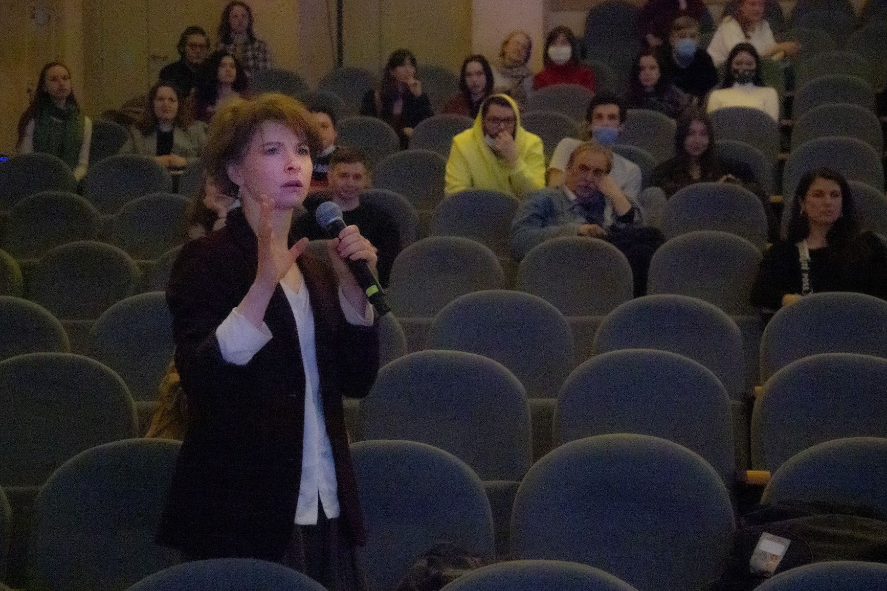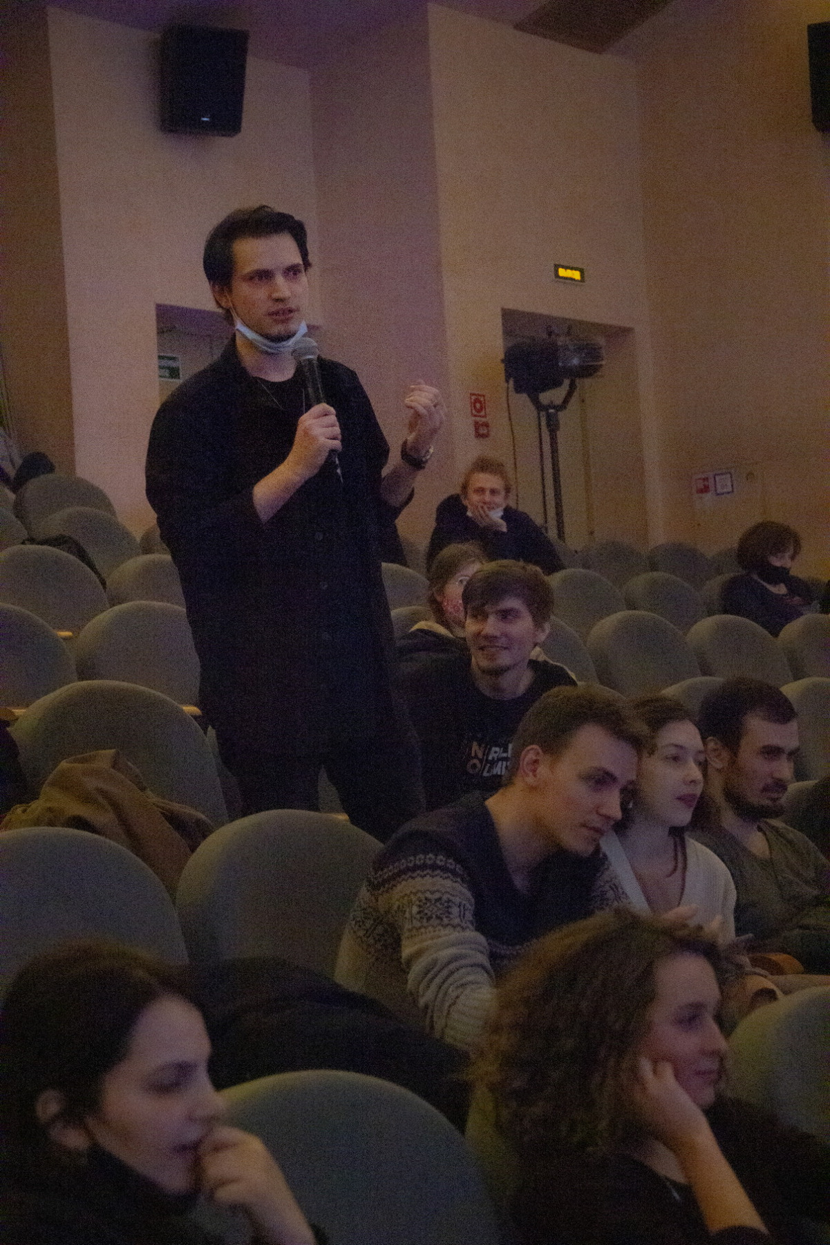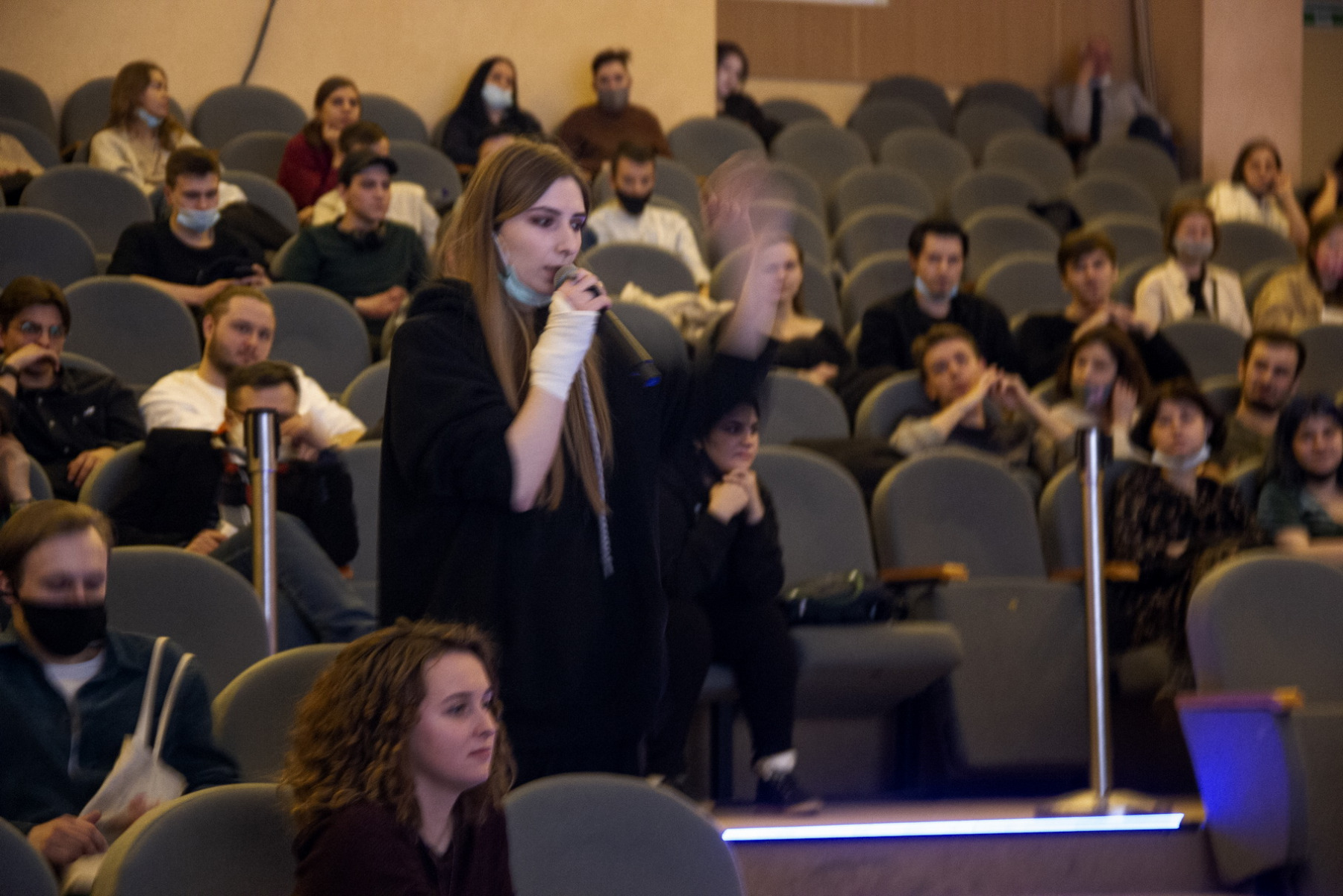 Это первое масштабное мероприятие кафедры режиссуры игрового кино после выхода вуза на очную форму обучения, и по атмосфере в зале ощущалось, что студенты соскучились по событиям такого рода.