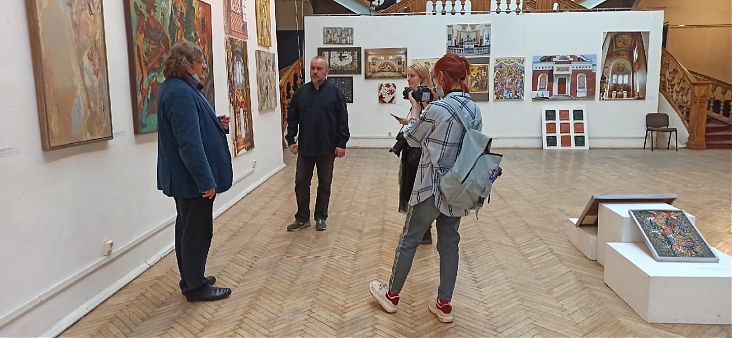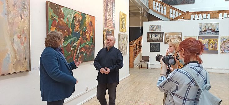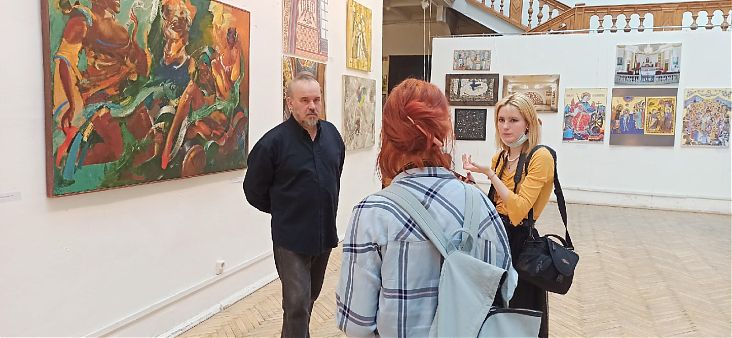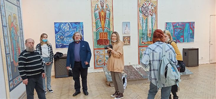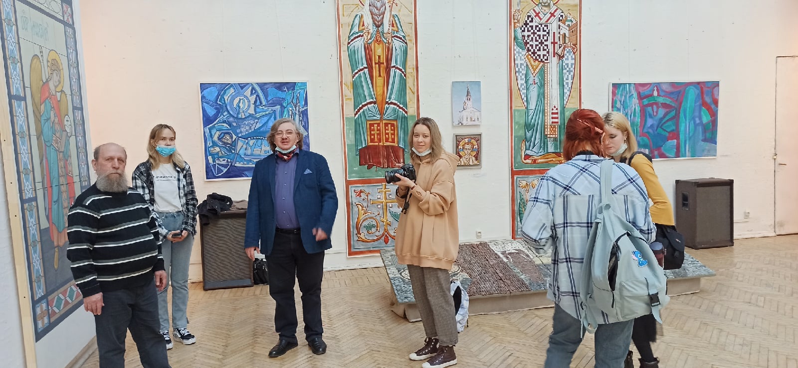 18 апреля 2021 года выставку посетили студенты- участники студенческого художественного кружка, организованного под руководством доцента кафедры искусствоведения И.Е. Конькова. В рамках это визита прошла творческая встреча студентов СПбГИКиТ с председателем секции монументального искусства, заслуженным художником России Ю. Н.Сухоруковым.