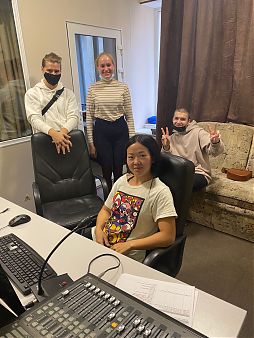 Также студия оказывает услуги по записи чистовой и черновой фонограммы на съемочной площадке. Ребята посмотрели, как звукорежиссер студии Александр Панов проводит речевоеозвучание сериала, звукорежиссер Ирина Цой занимается чисткой фонограммы, звукорежиссер Александра Богатырева проводит перезапись и актеры шумового озвучивания Александр и Наталья Демич трудятся над проектом.