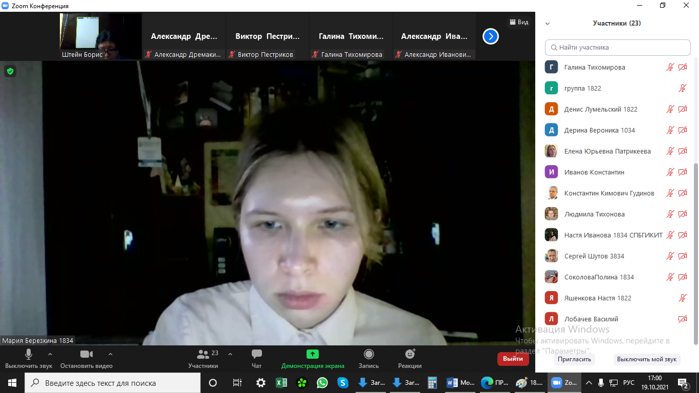Березкина Мария Дмитриевна, студент гр. 1834 СПбГИКиТ