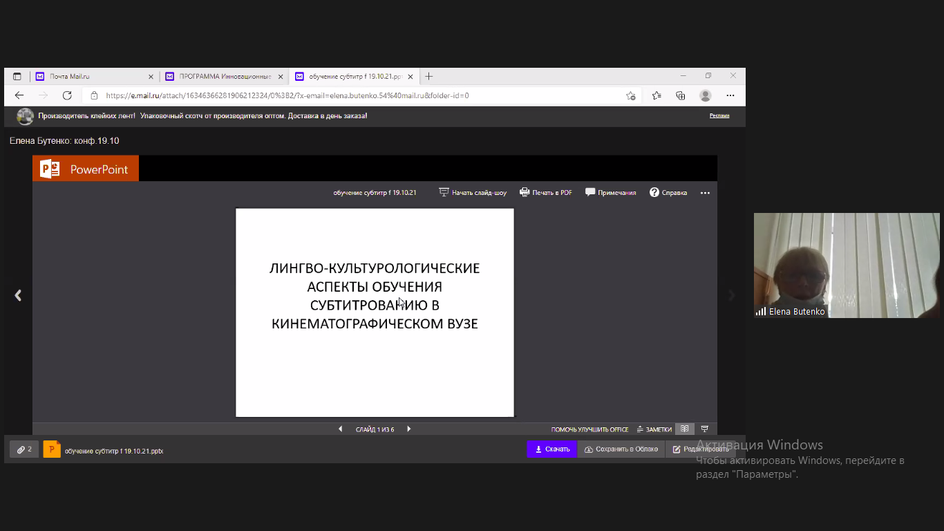 19, 20 октября 2021 г. в СПбГИКиТ на факультете телевидения, дизайна и фотографии состоялась VI Международная научно-практическая конференция «Инновационные технологии в медиаобразовании» в дистанционном формате.