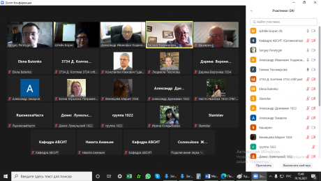 С приветственным словом и докладом о фундаментальных научных исследованиях в контексте методических задач дипломного проектирования, перспектив конвергентных направлений подготовки выступил заведующий кафедрой аудиовизуальных систем и технологий, профессор Александр Иванович Ходанович. В докладе представлены результаты сотрудничества СПбГИКиТ и СПбГУТ им. проф. М.А. Бонч-Бруевича по тематике выпускных квалификационных работ по направлениям подготовки «Радиотехника» и «Информационные системы и технологии».