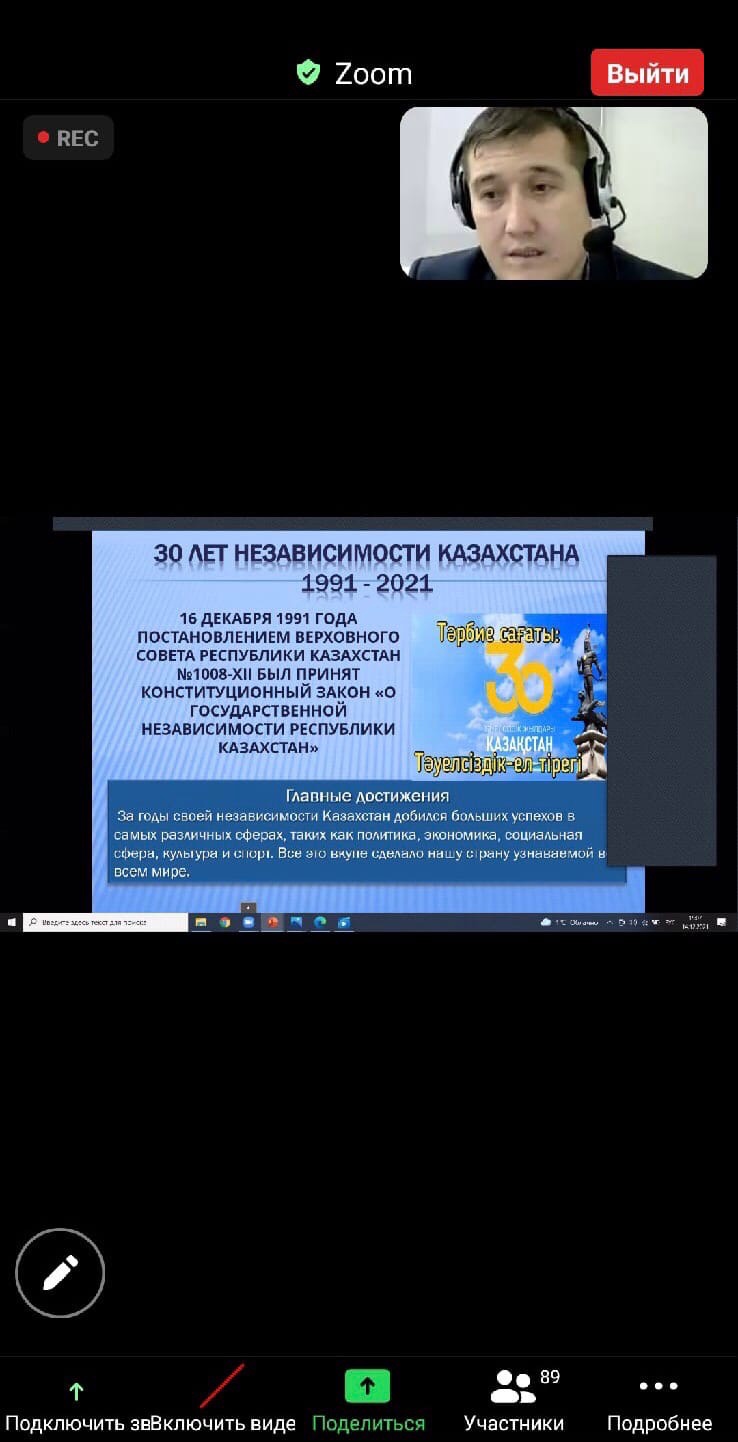 Инициатива проведения принадлежала «ЦТЭК» Республики Казахстан, Буглаковой С.А., которая рассказала об истории колледжа и достижениях Республики Казахстан за годы независимости.