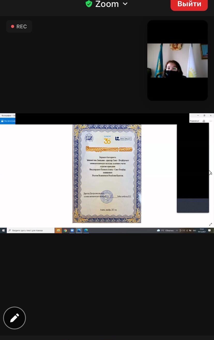 В рамках данного договора 14 декабря 2021 года, состоялся международный телемост «Алматы – Санкт - Петербург», посвященный 30-летию независимости Республики Казахстан.