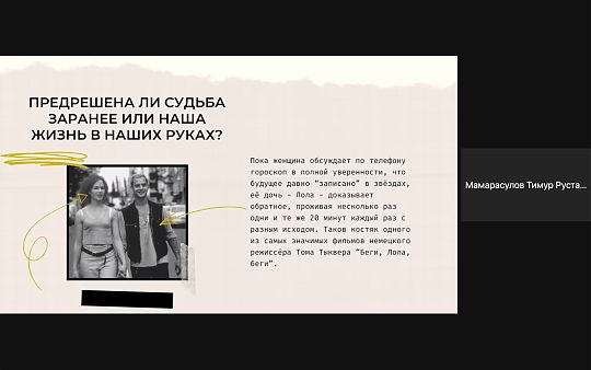 13 апреля 2022 года на кафедре иностранных языков СПбГИКиТ в онлайн формате состоялась внутривузовская творческая конференция «Душевная "кухня" современного кино».