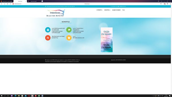 Научная Общественная Организация «Профессиональная наука» в 2022 г. запустила новый глобальный и самый крупномасштабный конкурсный проект — Interclover.ru. На данном сайте проводятся конкурсы разного уровня для преподавателей и студентов средних и высших учебных заведений, учителей и учащихся, аспирантов и молодых ученых.