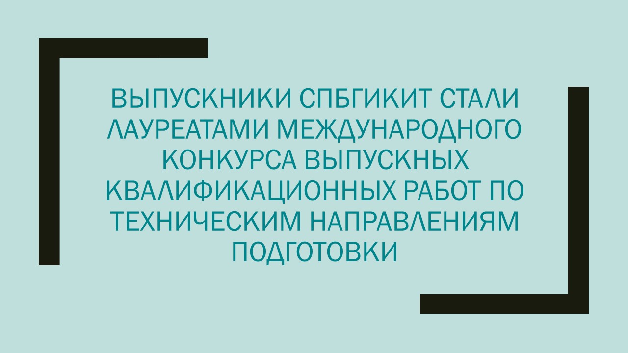 Выпускники СПбГИКиТ стали лауреатами международного конкурса выпускных квалификационных работ по техническим направлениям подготовки
