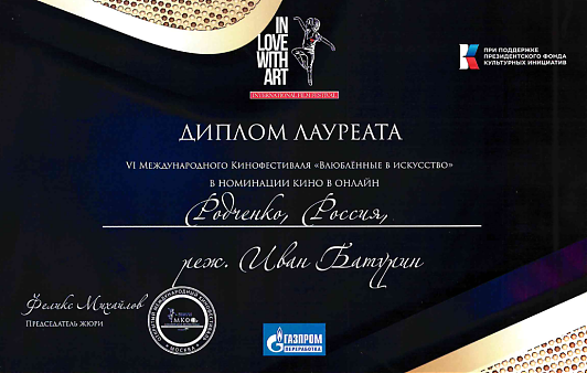 стал лауреатом в номинациях: ""Кино в онлайн" и ""Специальный приз Председателя жюри".