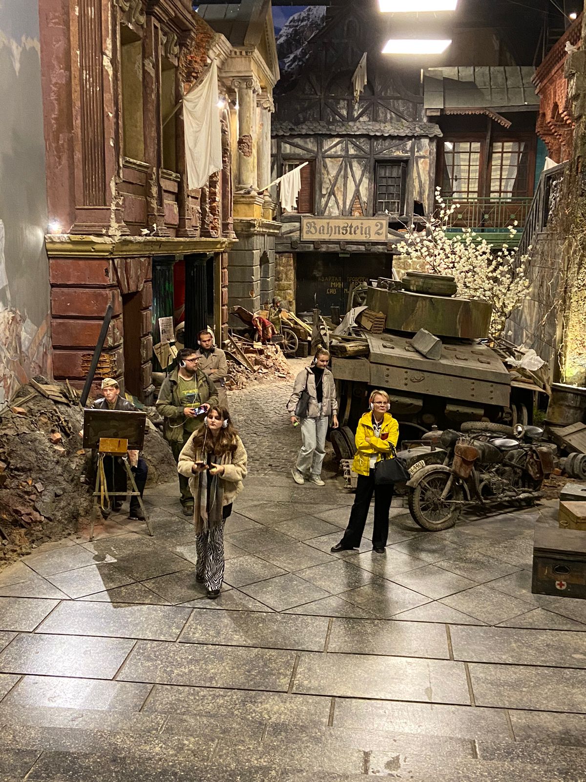 Масштабные декорации и панорамы позволили студентам погрузиться в атмосферу прошлых лет и узнать о том, как снимали кино и запечатлевали историю, жили и боролись в тяжелые для нашей страны годы. Фигуры людей, разрушенные здания, предметы быта, блиндажи - всё настолько реалистично, полное ощущение того, что это происходит на твоих глазах. События на героическом Невском пятачке, бомбоубежище Ленфильма, работа Центральной студии документальных фильмов, цех Ижорского завода, олене-транспортные подразделения Заполярья, битвы за Кавказ и Сталинград, освобождение Европы… Панорама позволяет стать свидетелем этих ужасных событий, заставляет размышлять, поднимает очень много чувств. И в конце переживаешь радость со слезами на глазах у стен Рейхстага – ПОБЕДА!!!