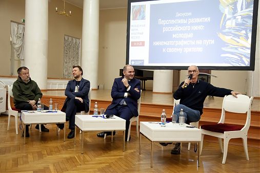 Модератором дискуссии выступила доцент кафедры режиссуры игрового кино ГИКиТ Мария Шеметова.