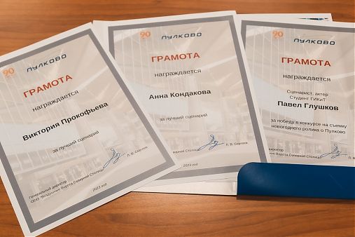 В Пулково наградили студентов Государственного института кино и телевидения за съемку новогодних рекламных роликов об аэропорте. Кроме того, призы получили авторы сценариев, ролики по которым предстоит снять в будущем.