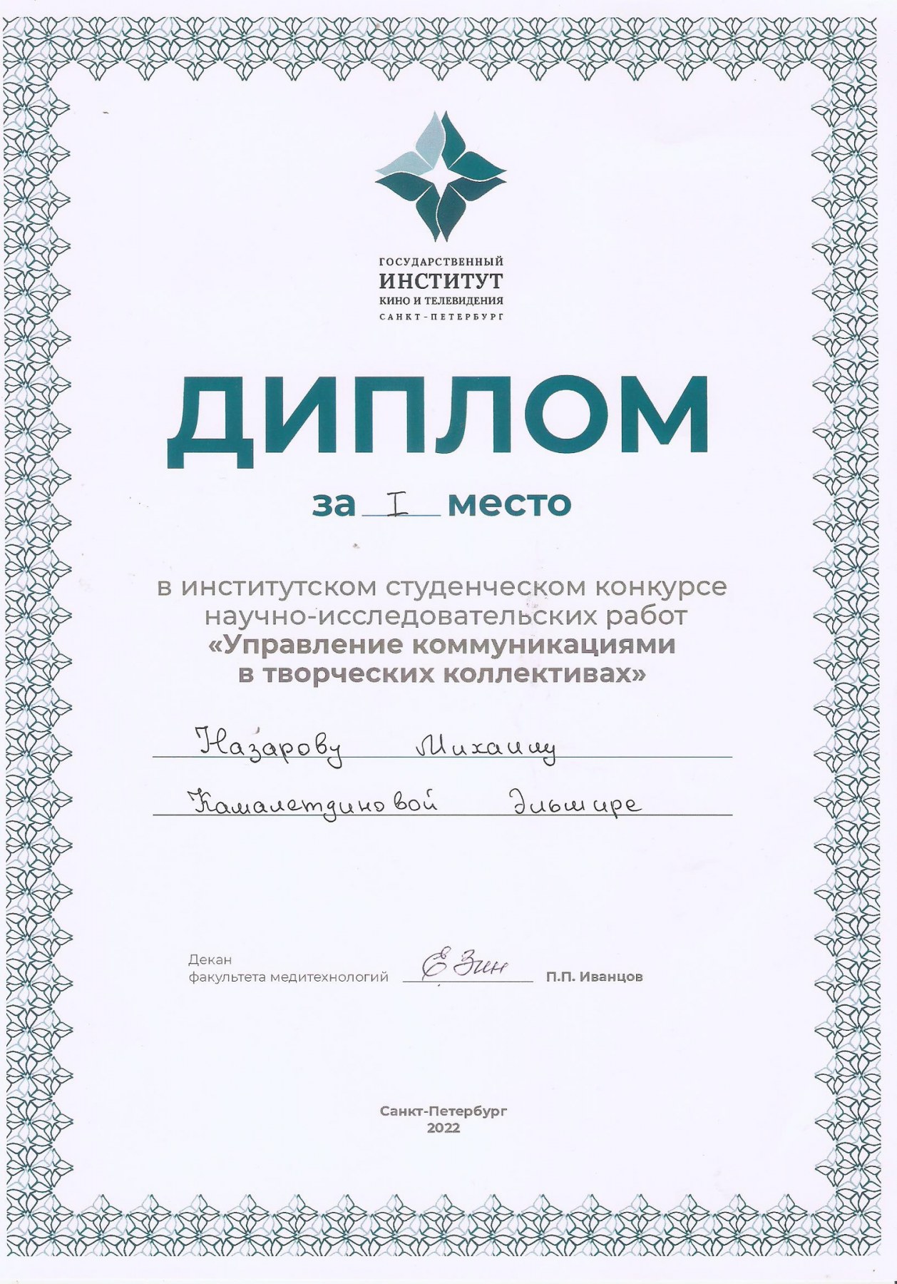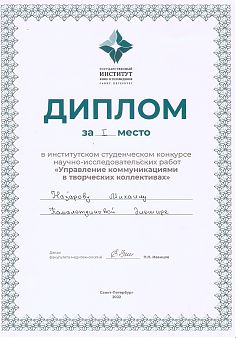 В ноябре-декабре на базе Санкт-Петербургского государственного института кино и телевидения проходил студенческий конкурс научно-исследовательских работ «Управление коммуникациями в творческих коллективах».