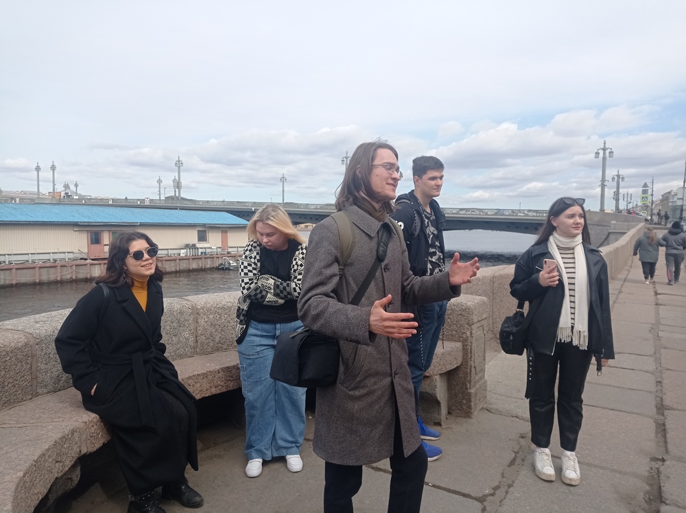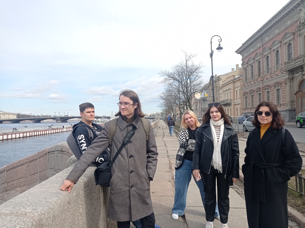 23 апреля студенты группы 1235 («Искусства и Гуманитарные науки») (Минаева А., Борисенков А., Кононенко В., Якимов В., Хамазюк С., Конакова У., Екимова У.) прогулялись по Английской набережной. Английская набережная с конца 18 века была кусочком английской жизни. Здесь была небольшая английская колония, в которой селились купцы, врачи, архитекторы, художники, садовники, миссионеры. Англичане сохраняли свой язык, культуру, уклад жизни. В этом месте когда-то находились: английские трактиры и магазины, английский клуб, театр, посольство, церковь. Почти каждый дом на Английской набережной связан с англичанами и англоманами из среды русских аристократов и влиятельных сановников 19 века. Студенты узнали много нового об английской клубной культуре, истории здания англиканской церкви в Санкт-Петербурге, английских врачах М. Голидее, И. Роджерсоне, Я. Виллие. Ребята побывали на месте швартовки яхты «Британия» во время единственного визита английской королевы Елизаветы II в Россию в 1994 году, а также подробно рассмотрели уникальные здания набережной, причалы, спуски. Студенты поучаствовали в викторине на английском языке.