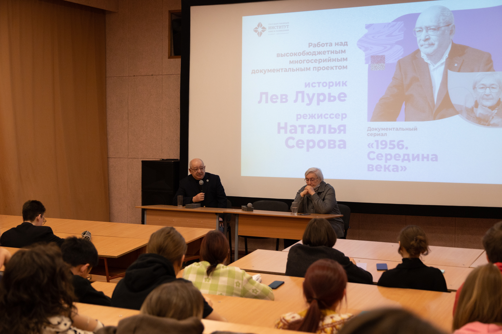 В Санкт-Петербургском государственном Институте кино и телевидения состоялся мастер-класс историка, журналиста Льва Лурье и режиссера Натальи Серовой «Работа над высокобюджетным многосерийным документальным проектом». Студентов Института погрузили в эпоху оттепели, рассказав, как создается большое кино.