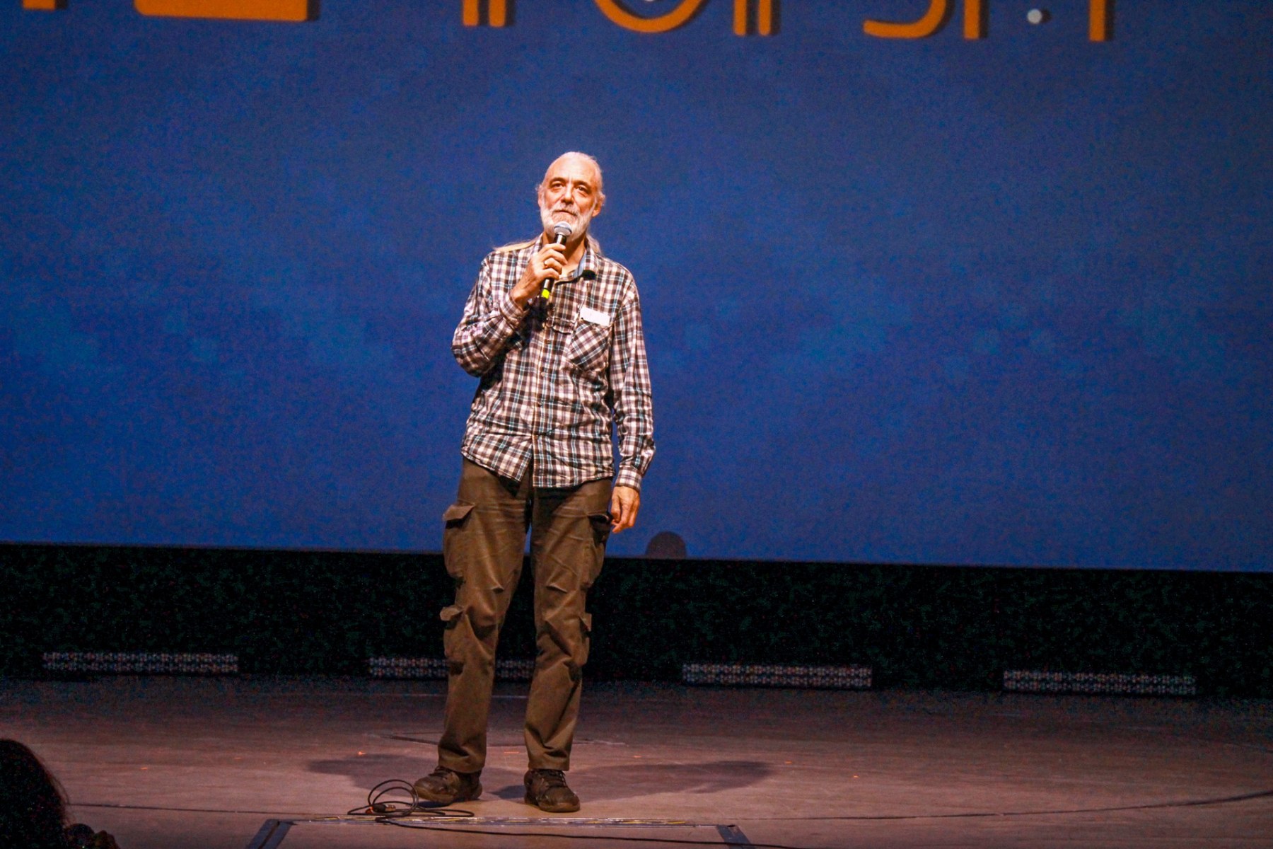 Самый волнующий момент, начало показа фильмов конкурсной программы. Перед его началом к участникам и гостям обратился руководитель Форума доцент кафедры компьютерной графики и дизайна Михаил Васильевич Коновалов.