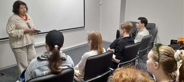 06.07.2023 состоялась творческая встреча студентов гр.1039 и 1139 кафедры фотографии и народной художественной культуры направления «Реставрация» с зам. директора Российского государственного архива документальной кинохроники и фотографий в Красногорске Р.М. Моисеевой. На встрече обсуждались вопросы особенности приема на постоянное хранение аудиовизуальных документов в архив, который в настоящее время содержит более миллиона фотографий и 250 тысяч киноплёнок, а также в ходе творческой встрече Р.М. Моисеева осветила тему являются ли аудиовизуальные документы иллюстрацией или историческим источником.