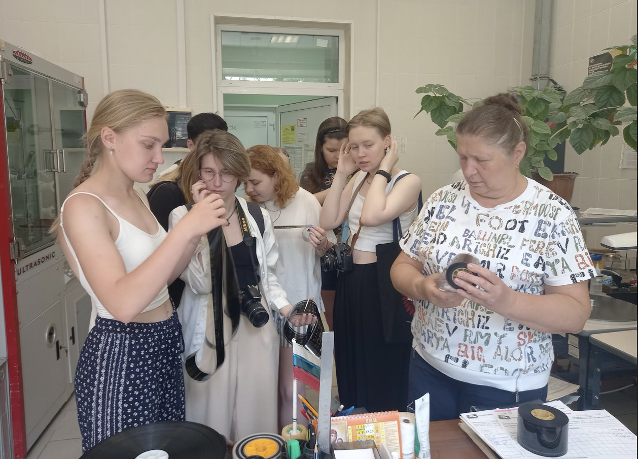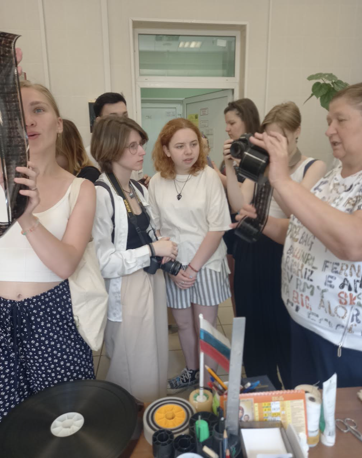 05.07.2023 состоялась творческая встреча студентов гр.1039 и 1139 кафедры фотографии и народной художественной культуры направления «Реставрация» с начальником участка реставрации и восстановления фильмовых материалов Саплиной Н.А. на тему «Реставрация документов на пленочном носителе как надежном носителе хранения информации». На встрече студенты ознакомились с особенностями процесса реставрации эмульсионного слоя и основы кинопленки, с уникальной коллекцией кинодокументов, поступившей на реставрацию в Госфильмофонд РФ, особенностями ее восстановления.
