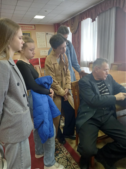 Сергей Алексеевич провел большое количество реставрационных работ как музейных предметов, так и работ по реставрации крупных архитектурных объектов, таких как: купол Никольского Морского Собора (г.Кронштадт), за большой вклад в реставрацию этого памятника был награжден Памятной медалью; Дом Лобановых-Ростовских (СПб.); Грановитая палата (г.Москва, Кремль) и т.д., а также значительное количество архитектурных скульптур и памятников г.Санкт-Петербурга. Занимается изготовлением и составлением композиций из фигурок нюрнбергского стандарта (нюрнбергская миниатюра). Студенты узнали об особенностях реставрации этих объектов культурного наследия.