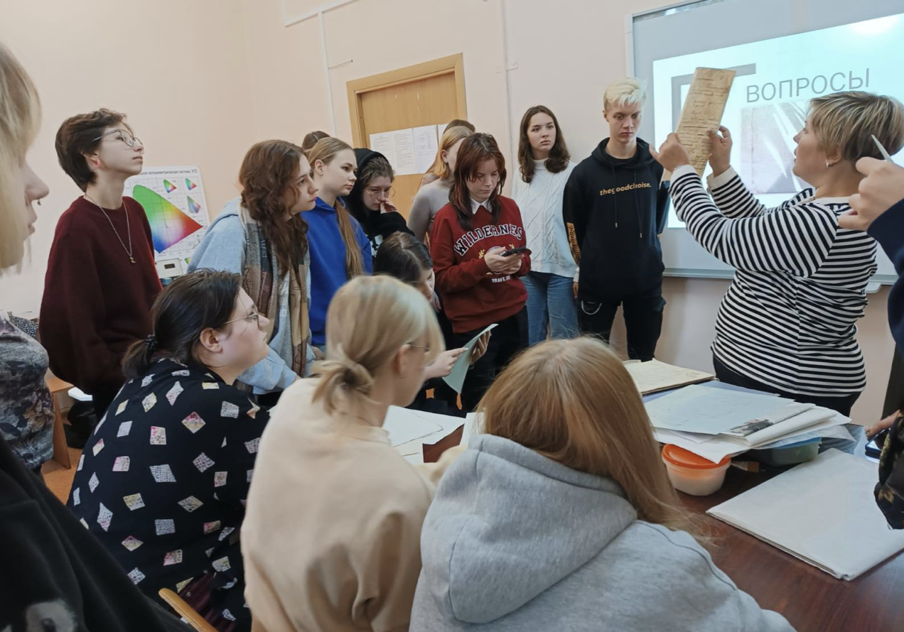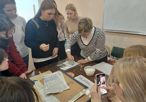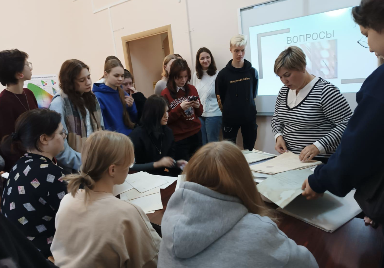 16.10.2023 была организована доцентом Е.А. Мельниковой и доцентом Н.С. Егоровой творческая встреча для студентов гр.1039 и гр.1239 направления 54.03.04 «Реставрация» с сотрудниками Санкт-Петербургского государственно казенного учреждения «Лаборатория обеспечения сохранности документов государственных архивов учреждений Санкт-Петербурга»: заведующей цехом реставрации особо ценных архивных документов Крицкой Г.В. и художником – реставратором Катыкиной Д.П.