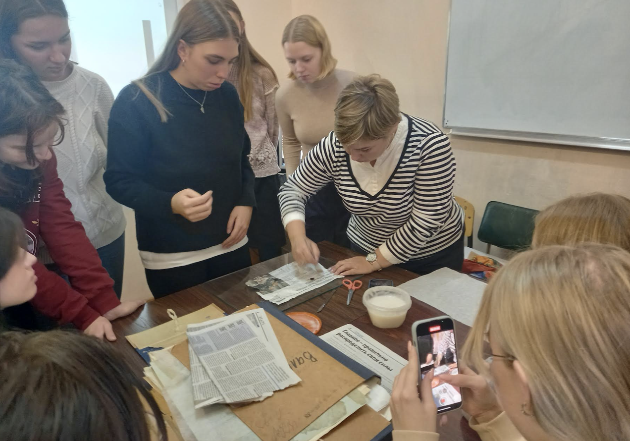 Творческая встреча для студентов направления "Реставрация" с заведующей цехом реставрации особо ценных архивных документов Крицкой Г.В. и художником – реставратором Катыкиной Д.П.