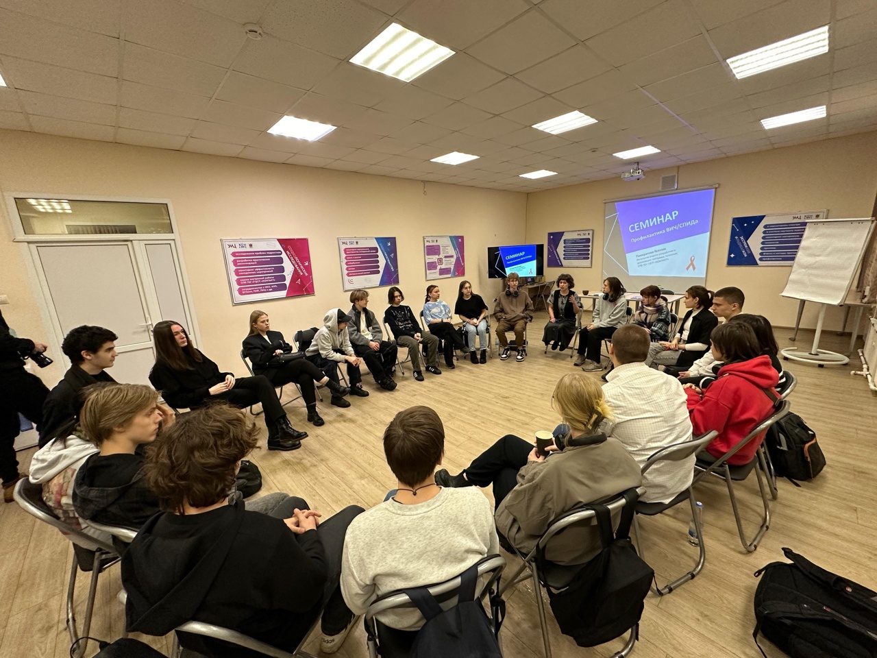 5 декабря студенты Киновидеотехнического колледжа в сопровождении преподавателя Васильевой Светланы Николаевны посетили семинар «Профилактика ВИЧ/СПИД» на базе Учебно-методического центра КОНТАКТ.