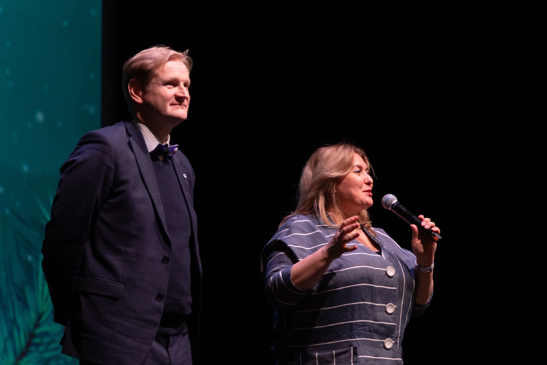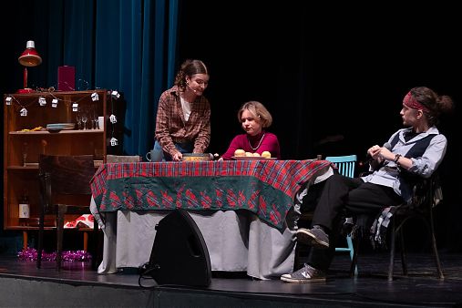 В праздничной программе – танцевальные, вокальные номера, театральные миниатюры на новогоднюю тематику от студентов всех факультетов. Над сценарием работали преподаватели факультетов экранных искусств и медиатехнологий Диана Богуславская и Ада Ханчадарова.