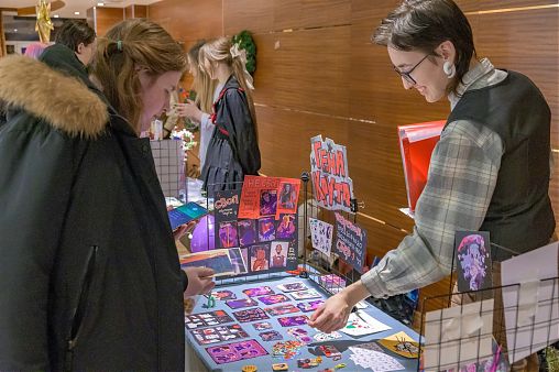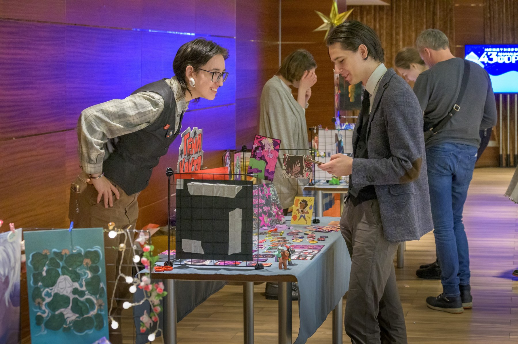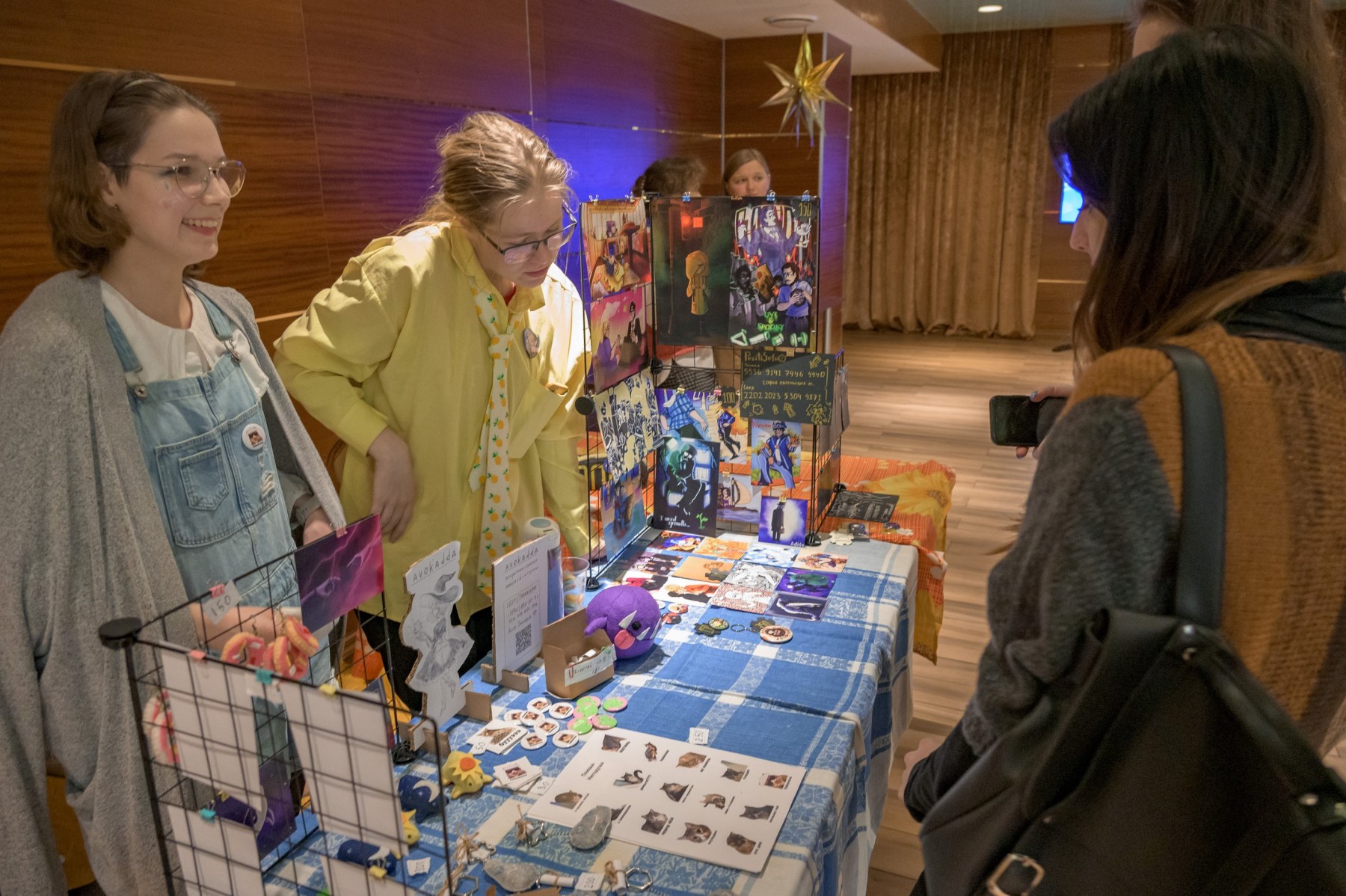 В антракте в фойе открылась "Аллея авторов". Выпить чаю, встретиться лицом к лицу с авторами фильмов, поговорить со старыми друзьями и завести новых, обменяться продукцией собственного творчества и контактной информацией, обсудить общие планы на будущее — на всё так мало времени, впереди второе отделение анимационных фильмов конкурсной программы.