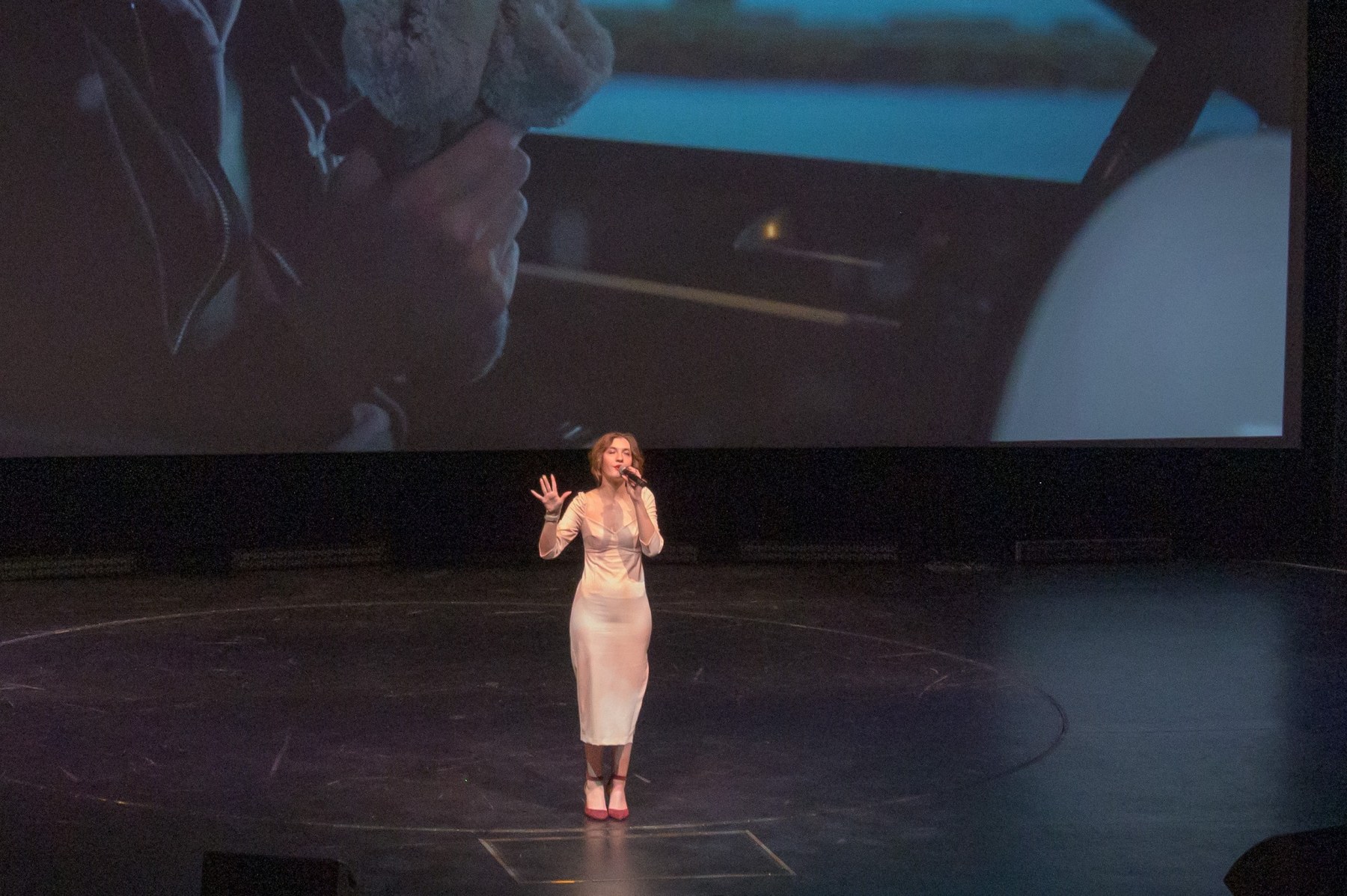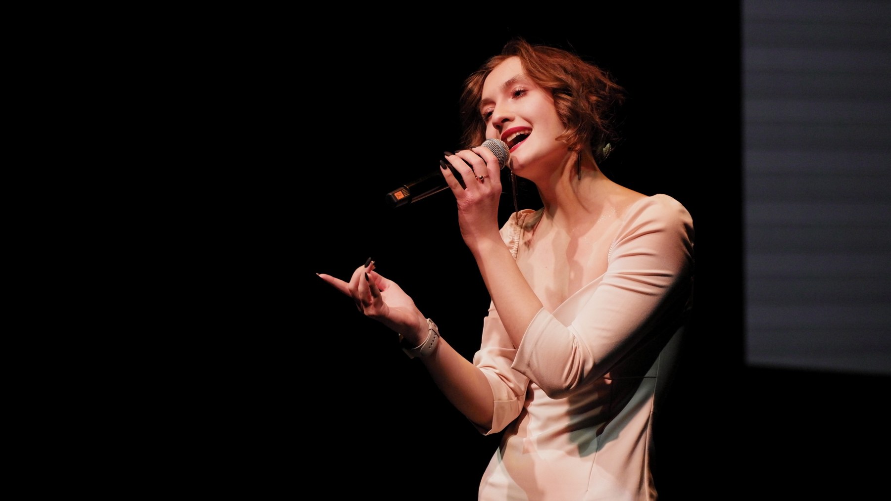 Вокальную эстафету талантов принимает первокурсница Валентина Абрамовская с песней Альбины Рябовой «Скажи сейчас».