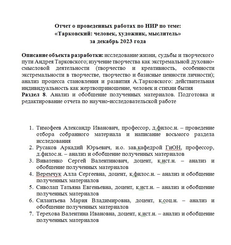 НИР "Тарковский: человек, художник, мыслитель"