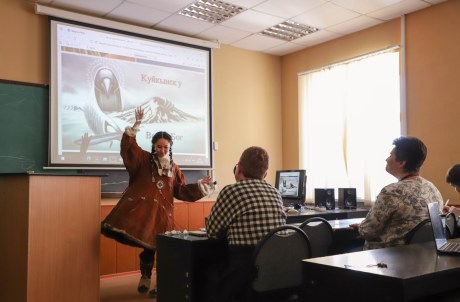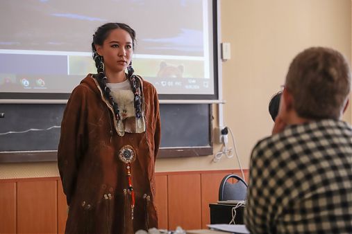 В завершение Елена Кульу рассказала участникам конференции о традициях народов Севера, их верованиях, образе жизни и мышления. Девушка поделилась историей своей семьи и продемонстрировала национальный костюм.