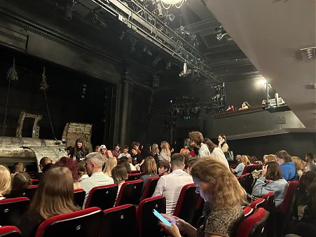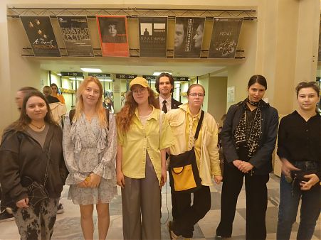 6 июня студенты группы 1267б («Графика») посетили Малый драматический театр, который занимает здание, построенное в 19 веке на перекрестке Графского перекрестка и улицы Рубинштейна. Здание включено в список объектов, представляющих историческую, научную и художественную ценность. В 20 веке в доме жил всемирно известный создатель американского балета Джордж Баланчин. Студенты также посмотрели спектакль «Повелитель мух», поставленный Л. Додиным по одноименному роману (“Lord of the Flies”) британского писателя Уильяма Голдинга, лауреата Нобелевской премии по литературе. Яркие и интересные декорации, игра молодых актеров привели студентов в восторг. После просмотра театральной постановки студенты получили творческое задание к следующей встрече в институте. Студентам следует описать актерское мастерство и интерпретацию ролей, декорации и реквизит, дизайн костюмов и макияж, музыкальное сопровождение, символические элементы, использованные в спектакле «Повелитель мух» на английском языке.