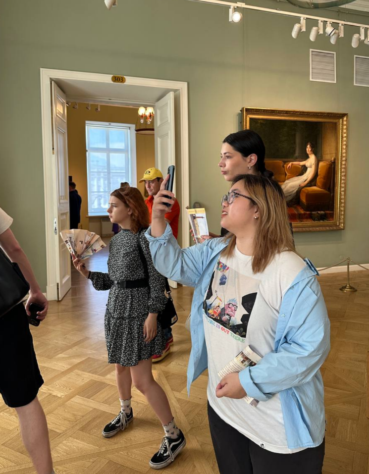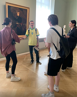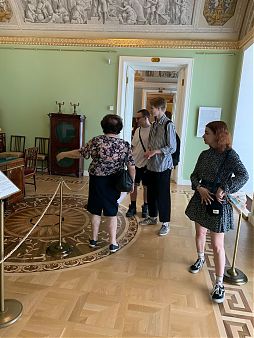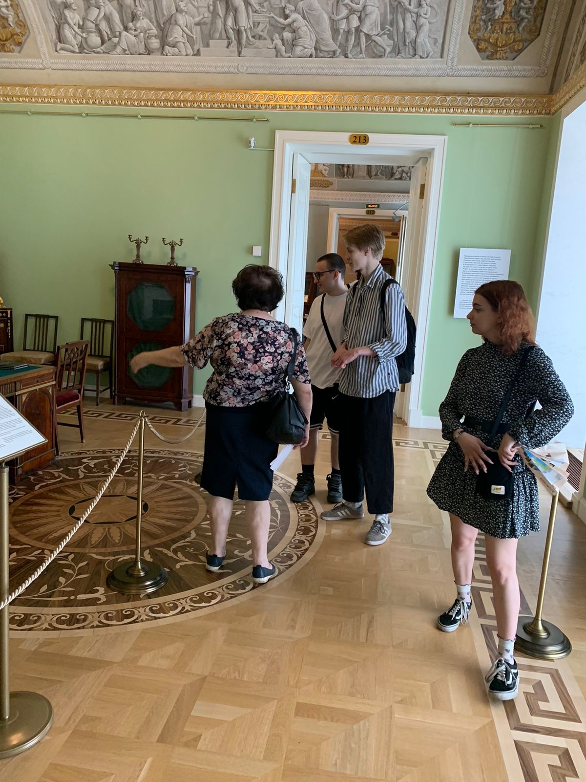 5 июня 2024 года доценты кафедры иностранных языков Л.А. Авакян и С.Л. Голубева организовали обзорную экскурсию для студентов группы II курса ФМТ (14 студентов, гр. 1221а, 1221б, 1231б, 1231в, 1236) в новый экспозиционный комплекс Государственного Эрмитажа Главный Штаб. Целью экскурсии являлось ознакомление студентов с величайшими достижениями русской и мировой культуры. Студенты посетили Галерею памяти Сергея Щукина и братьев Морозовых, в которой представлены произведения импрессионистов, постимпрессионистов, французские пастели, живопись и скульптура XX века. Студенты также посетили экспозиции: «Музей Российской Гвардии», «Залы памяти Карла Фаберже», «Под знаком орла. Искусство ампира» и постоянную экспозицию, рассказывающую о Министерстве иностранных дел Российской империи.
