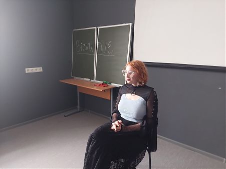 Уже выпустившиеся драматурги посещают институт не только с запасом интересных историй, но и с заданиями. Так, на занятия к группе 1137 (мастерская К.А. Федорова) Анастасия Маер (выпуск 2023 года, мастерская Н.А. Милашкиной) пришла со своей пьесой, небольшой лекцией о практиках документального театра и упражнением по технике «вербатим». Дополняла ее выступление и помогала проводить упражнение Елизавета Шевченко, нынешняя студентка магистратуры ГИКИТ. И несмотря на то, что сценарии, стиль и жанровые предпочтения Анастасии и Елизаветы отличаются сильно, работали они слаженно и эффективно.
