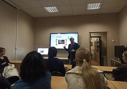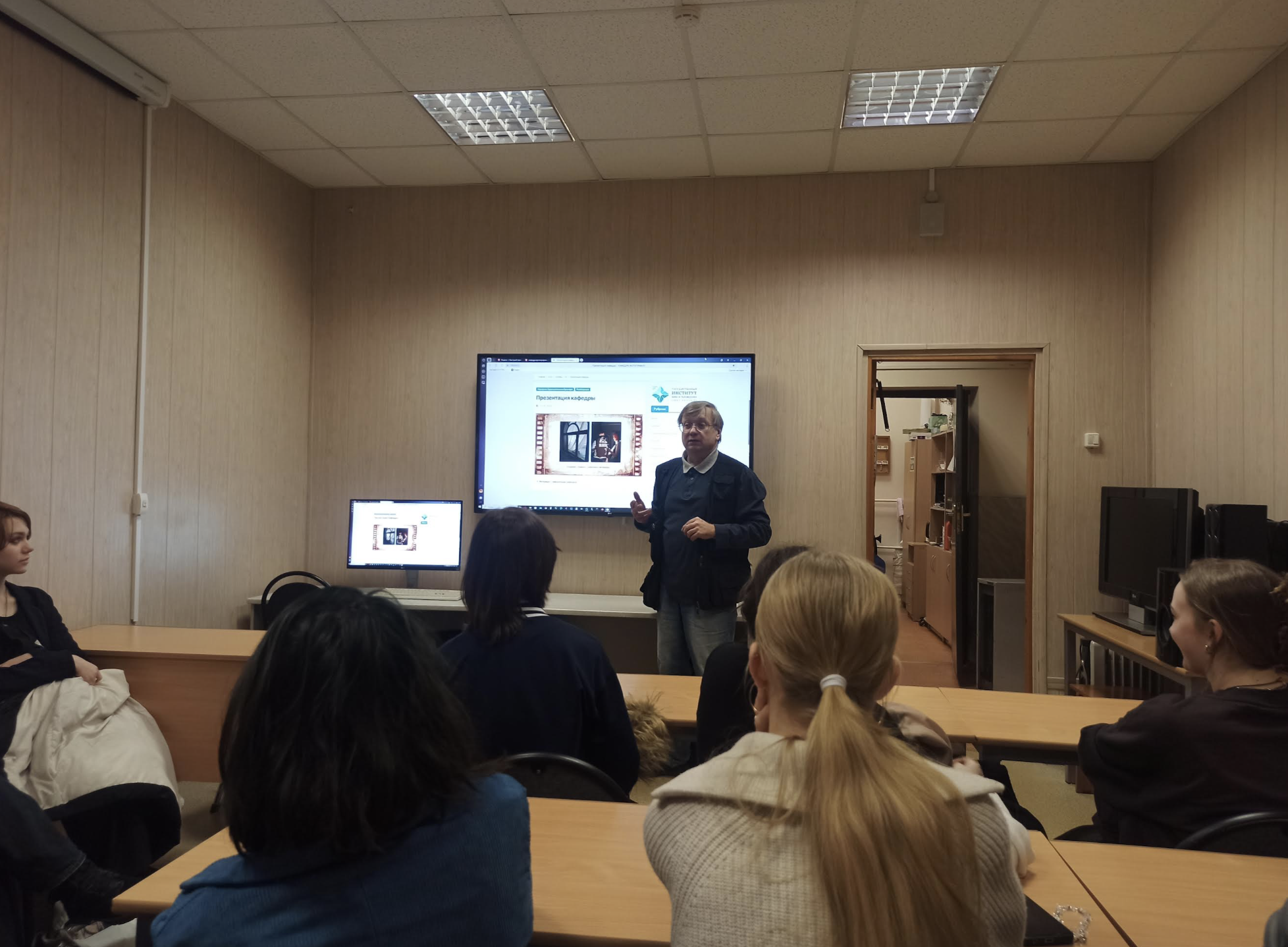 22 января 2025 года, старшие преподаватели кафедры фотографии и НХК Зайкин А.И. и Матушкевич С.С., провели встречу со студентами 1 курса специальности "Реставрация" Санкт-Петербургского государственного профессионального бюджетного образовательного учреждения "Академия реставрации и дизайна". Встреча была посвящена теме "Профессия Реставратор". Рассказали о особенностях профессии Реставратор в области сохранения и реставрации кино-фото-видеодокументов, возможностях фотографического метода для фотофиксации объектов культурного наследия и фиксирования процесса их реставрации. Подробно рассказали о процессе подготовки реставраторов на кафедре фотографии и НХК и показали возможности и работу кафедры и института в области реставрации. Провели экскурсию по аудиториям кафедры, показали примеры работ для освещения и контроля реставрационного процесса.