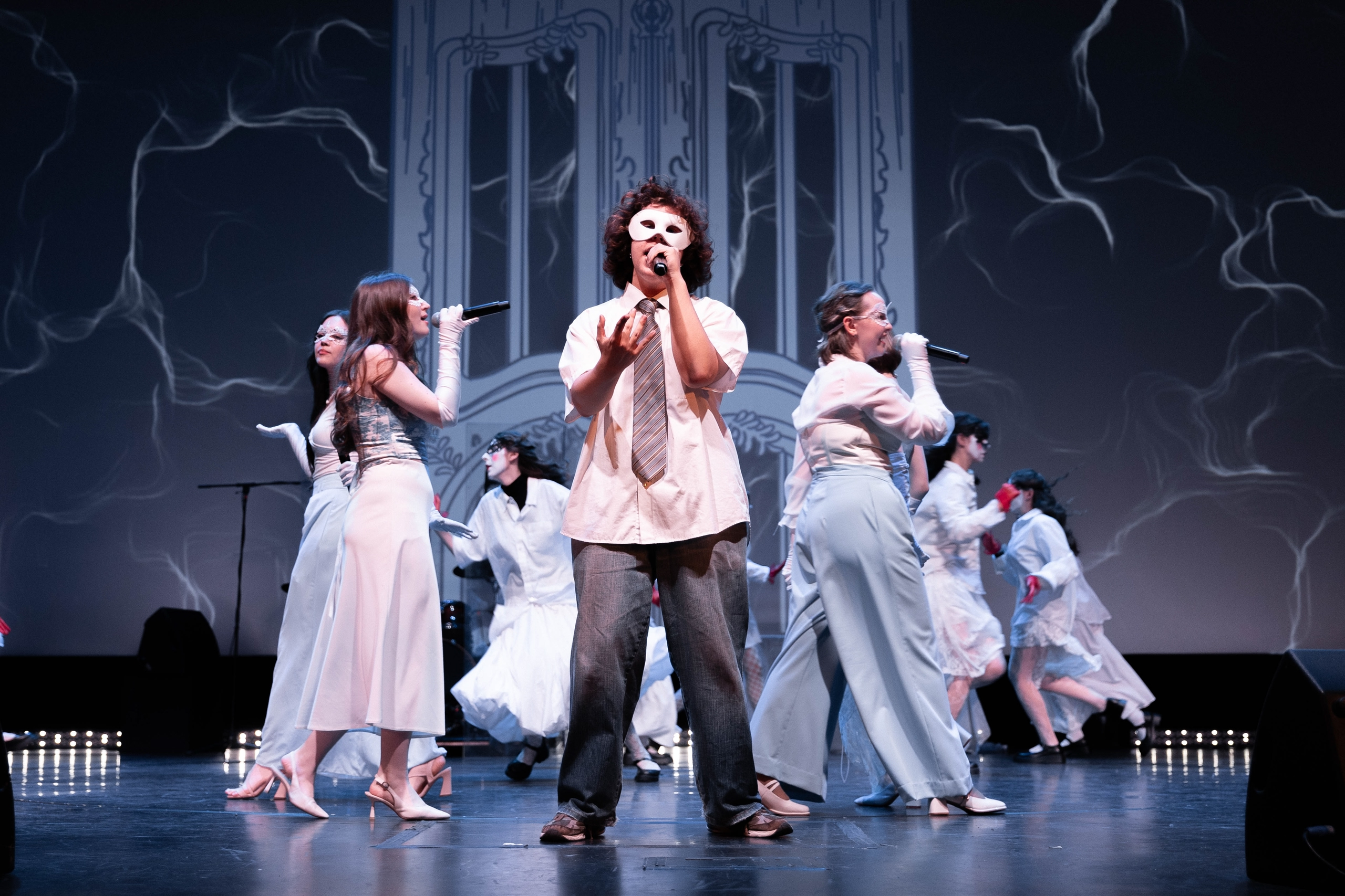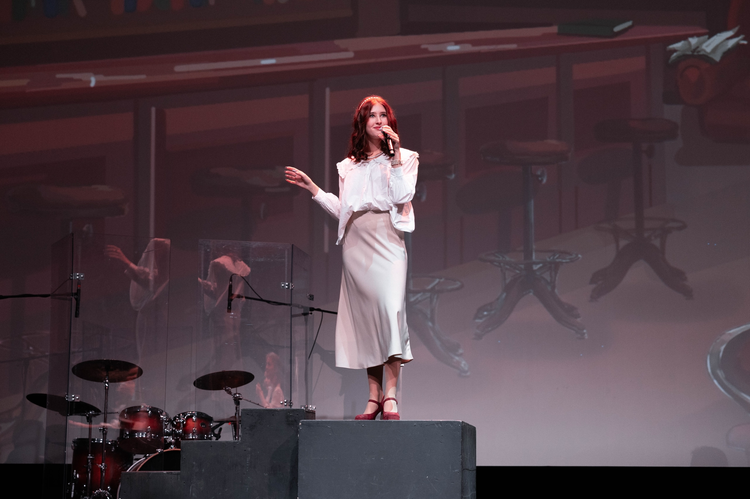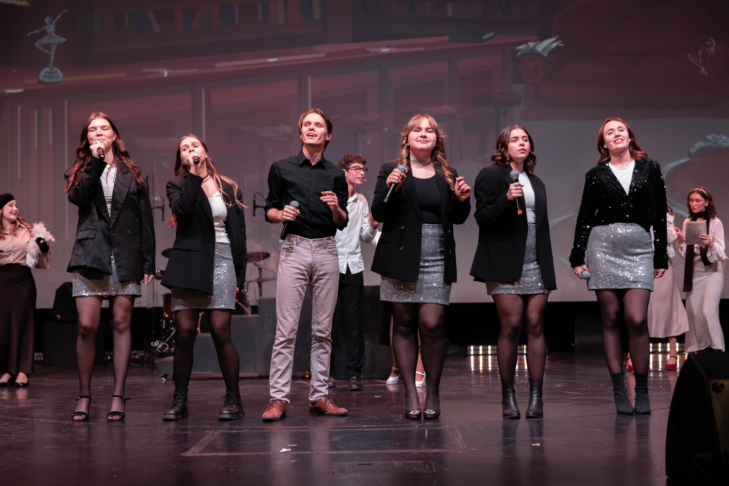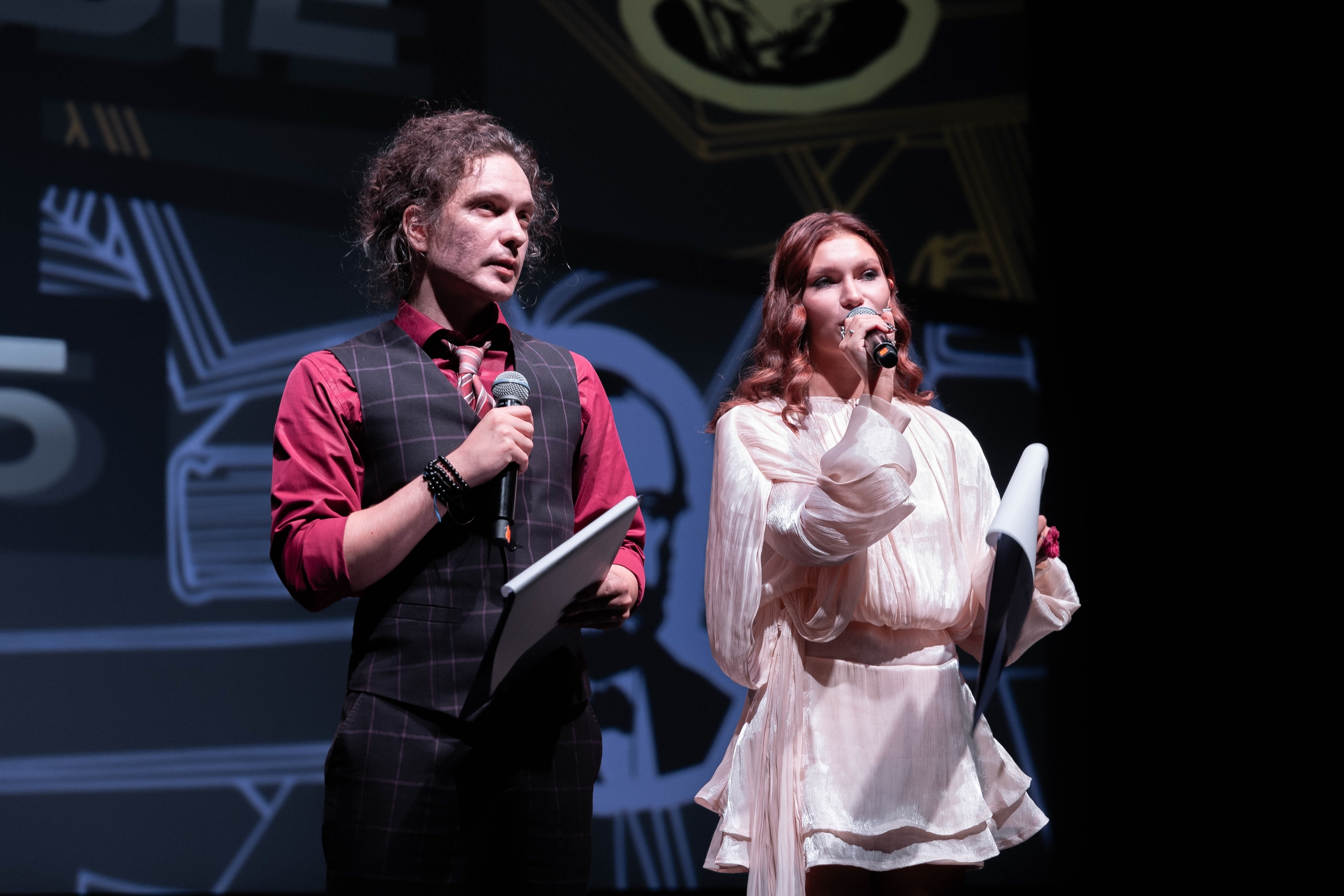 У входа в кинозал гостей встречали тематические фотозоны с отсылками к русской классике, а на сцене — мини-шоу в исполнении ребят, которые только делают первые шаги в студенческой жизни.