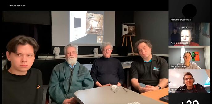 26 октября в онлайн-формате прошла встреча с абитуриентами "День открытых дверей". В мероприятии приняли участие представители кафедры: профессор Сергей Михайлович Ландо, а также мастера, набирающие мастерскую в следующем учебном году — профессор Иван Михайлович Багаев, доцент Ларионов и преподаватель Иван Михайлович Горбунов.