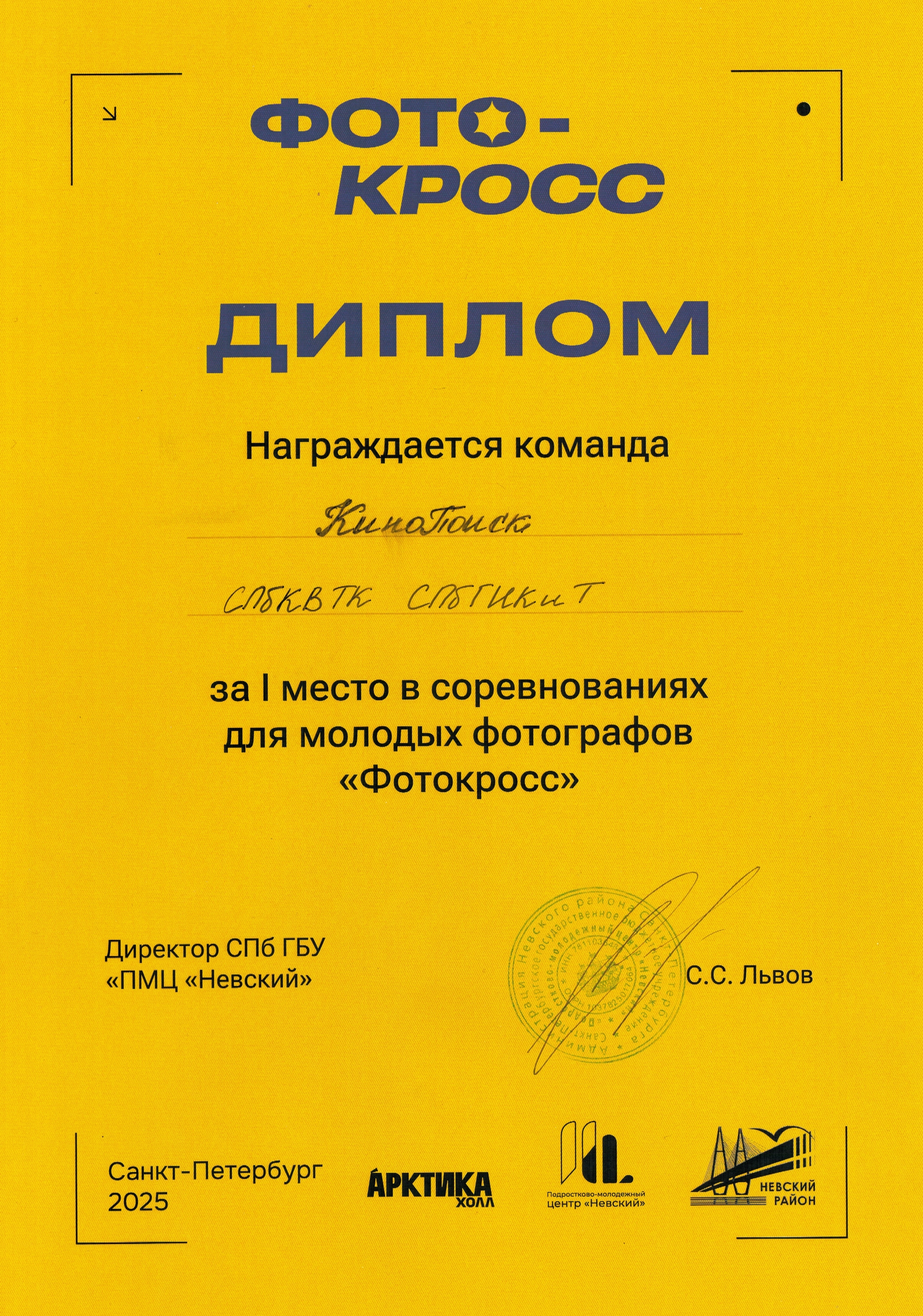 Талантливые студенты Киновидеотехнического колледжа стали победителями в соревнованиях для молодых фотографов "Фотокросс".