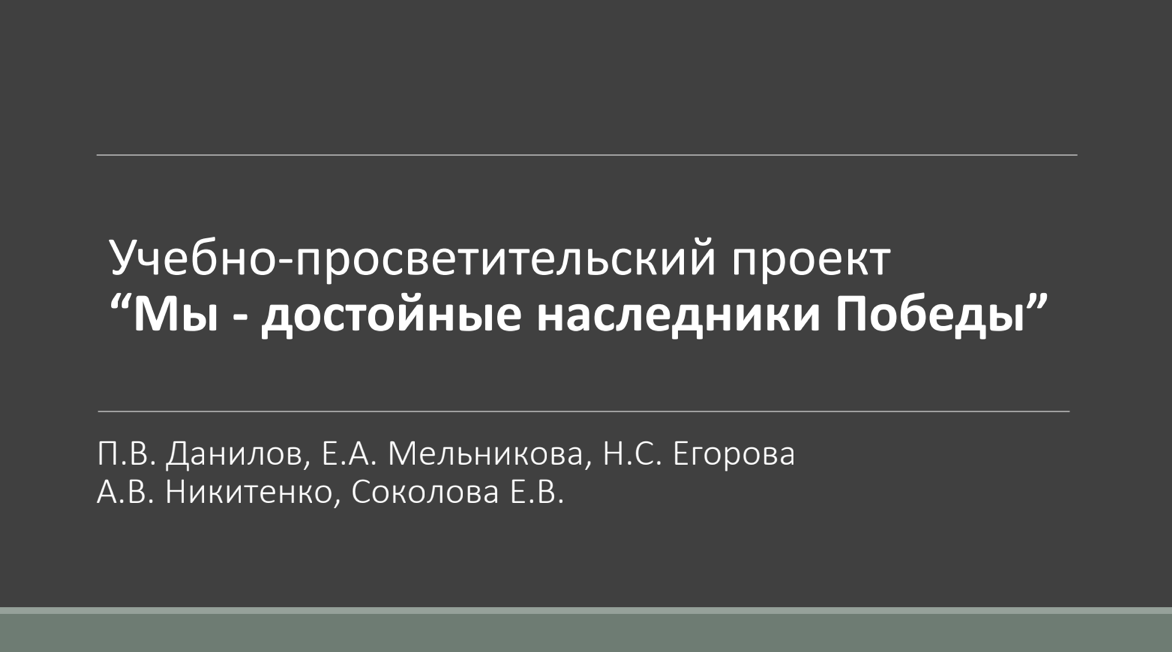 ИТОГИ РЕАЛИЗАЦИИ УЧЕБНО-ПРОСВЕТИТЕЛЬСКОГО ПРОЕКТА "МЫ - ДОСТОЙНЫЕ НАСЛЕДНИКИ ПОБЕДЫ"
