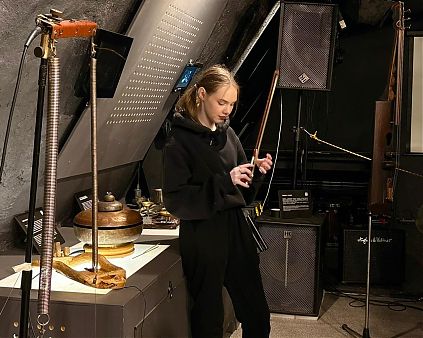 В музее ребятам показали воссозданную современную модель электро-оптического синтезатора «Вариофон», который был изобретен в 1931 году Евгением Шолпо в Ленинграде. Также сотрудники продемонстрировали работу терменвокса, который позволяет музыканту изменять высоту и громкость звука, двигая руками в электромагнитном поле, создаваемом антеннами инструмента, рассказали принцип работы карты звуков Санкт-Петербурга и многое другое.