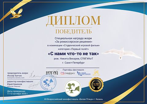 Фильм "С нами что-то не так", режиссёра Никиты Вихарева, мастерская Артёма Антонова, получил специальную награду жюри "За режиссёрское решение"!