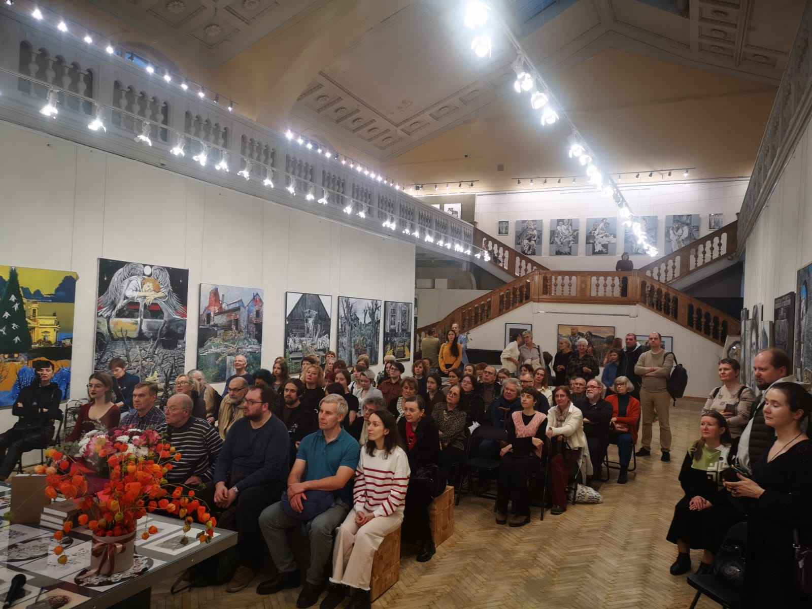 Встреча прошла в рамках персональной выставки Олега Яхнина «Глаза его мира» в Санкт-Петербургском Союзе Художников.