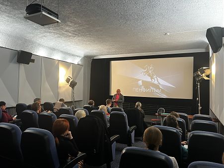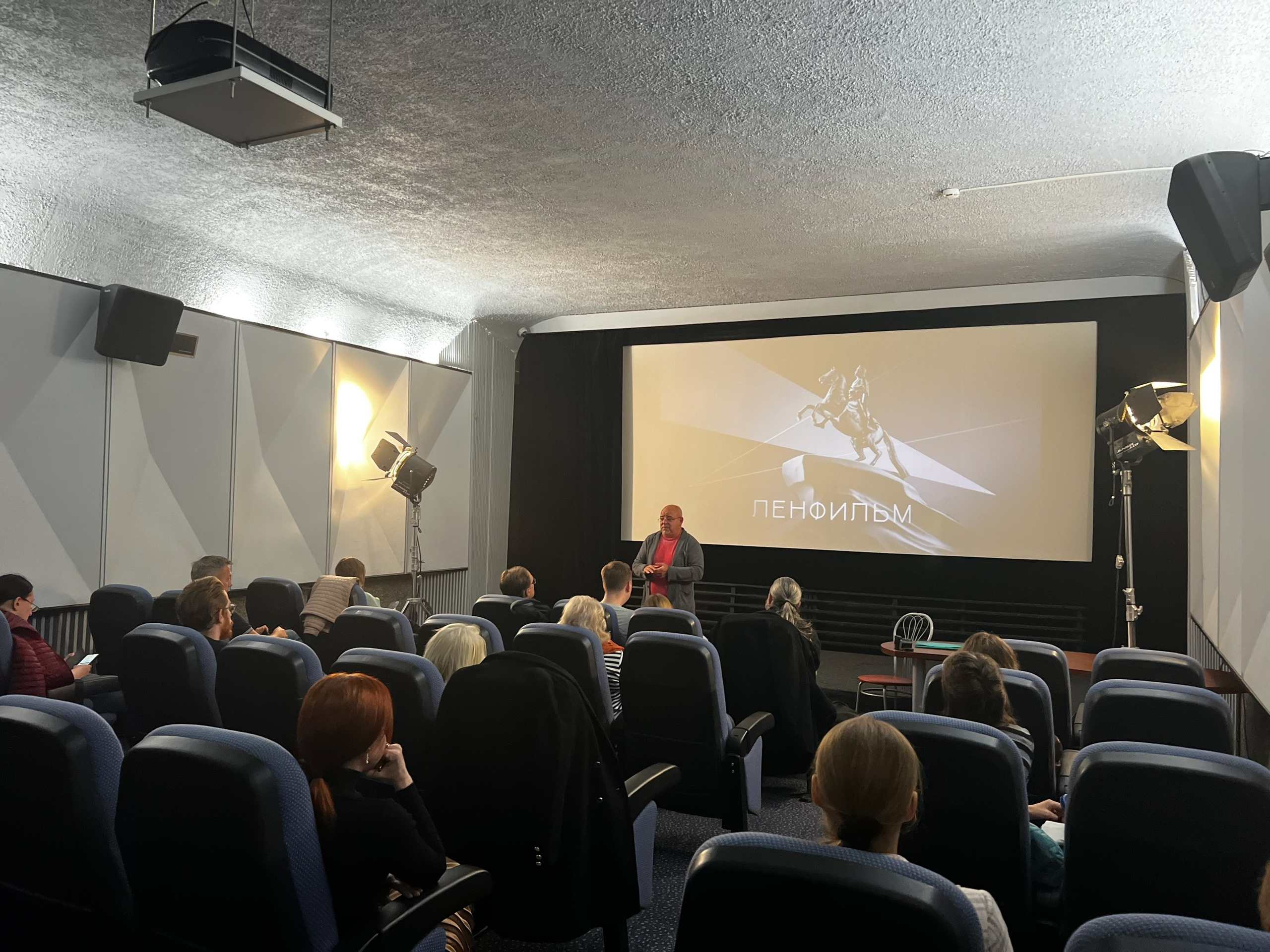 Встреча проходила в уютном зале Учебного центра киностудии "Ленфильм", известного своими традициями и вкладом в историю отечественного кинематографа.